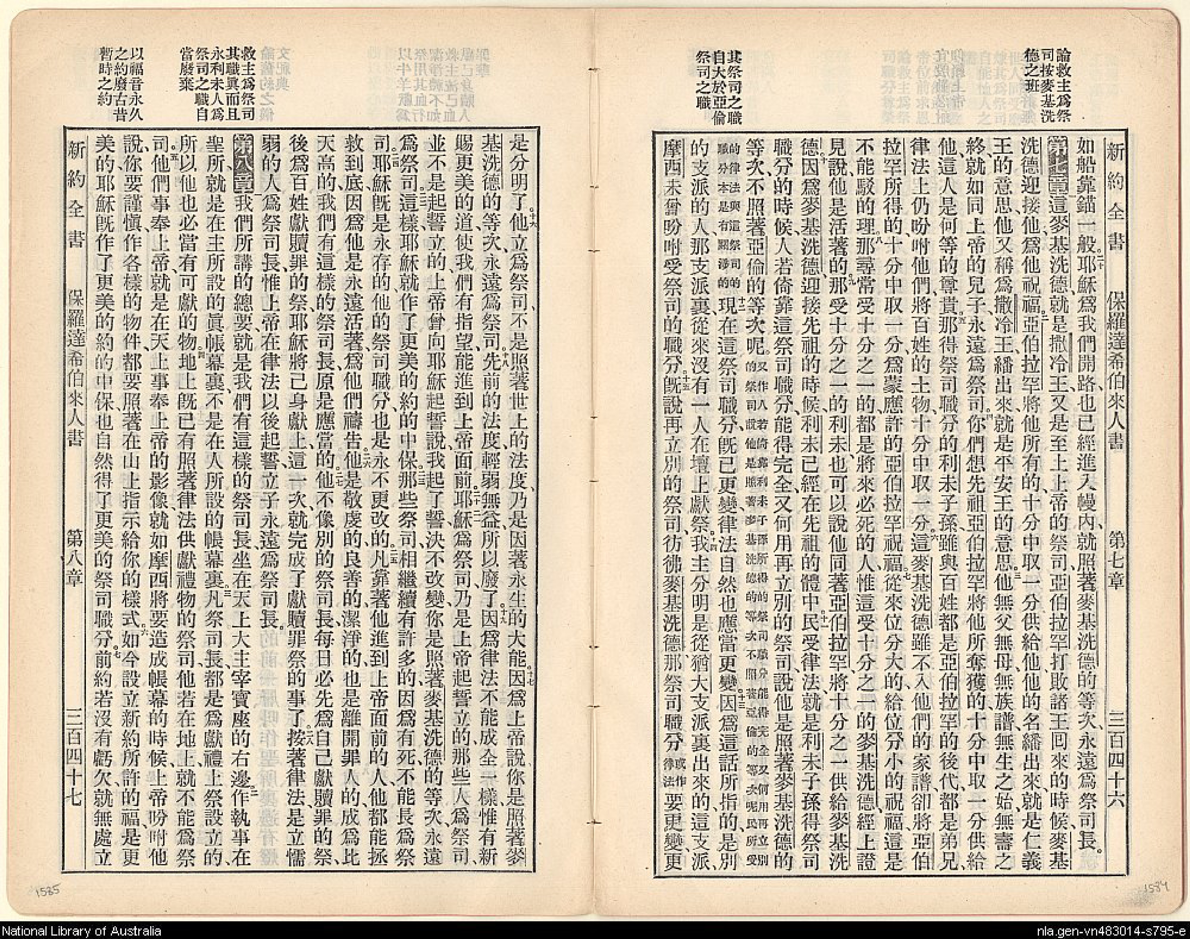 1905年舊約全書 希伯來書 6 章 20 節到 8 章 7 節