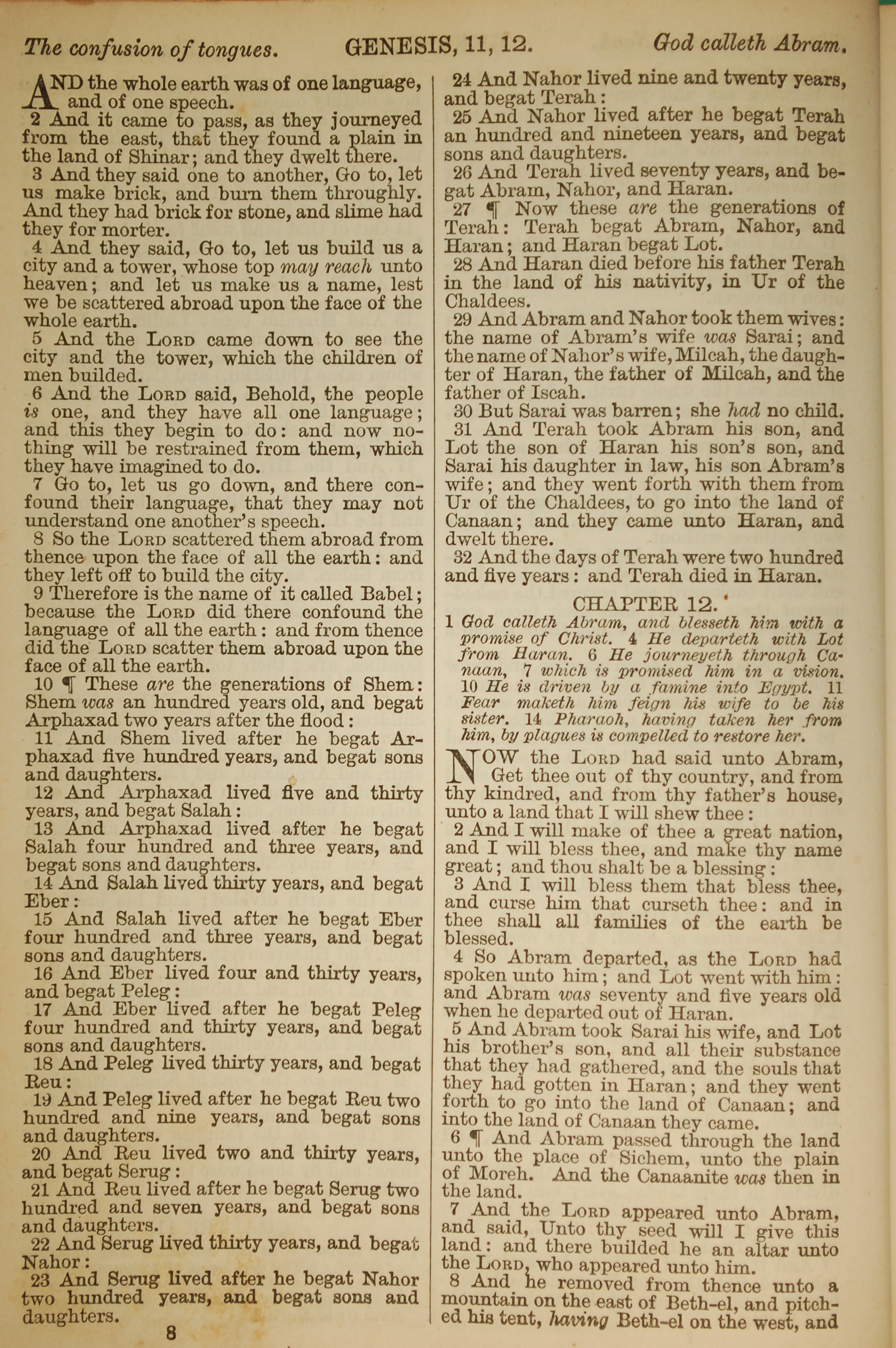 1886年英文聖經 創世記 11 章 2 節到 12 章 8 節