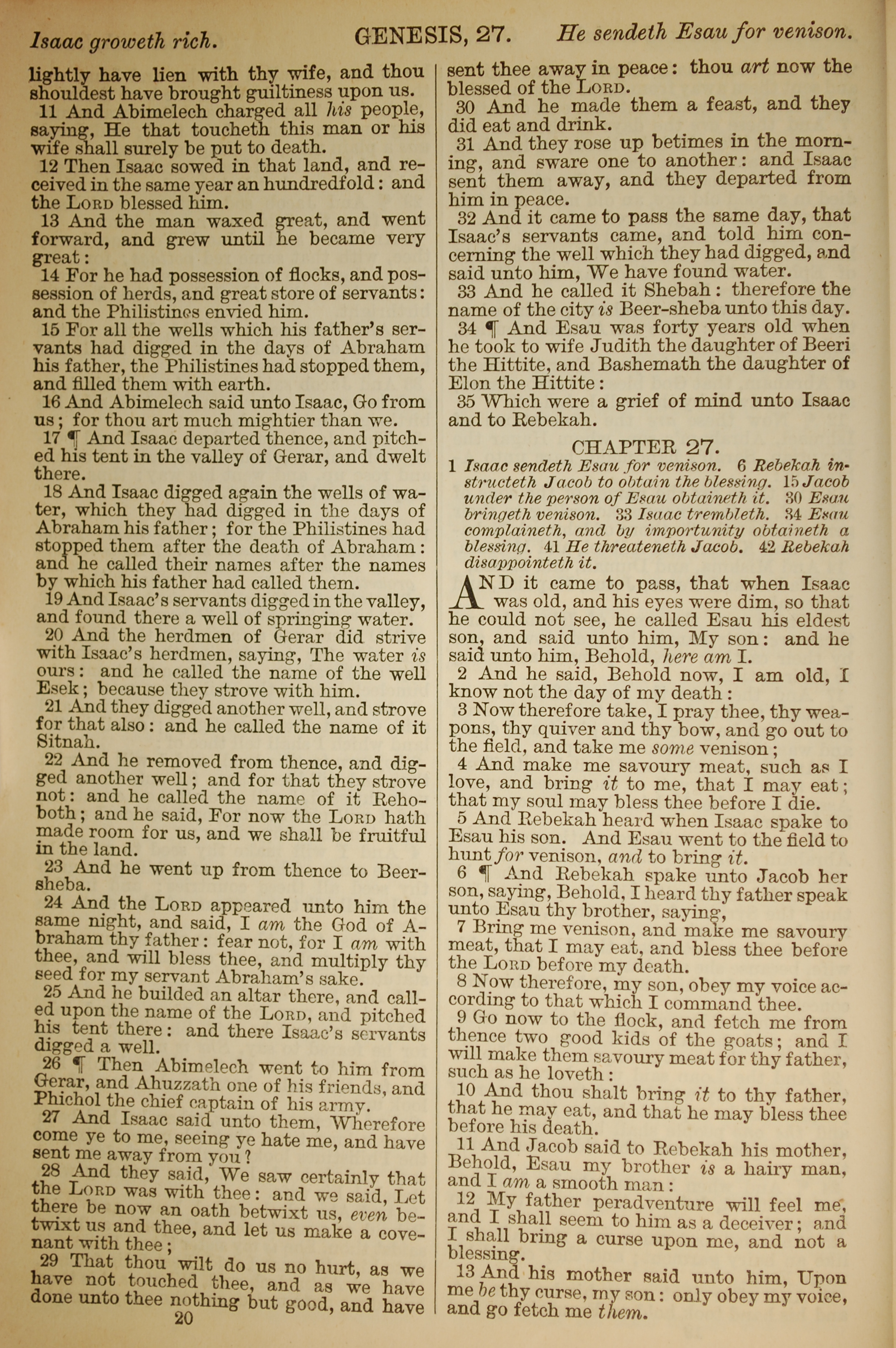 1886年英文聖經 創世記 26 章 11 節到 27 章 13 節