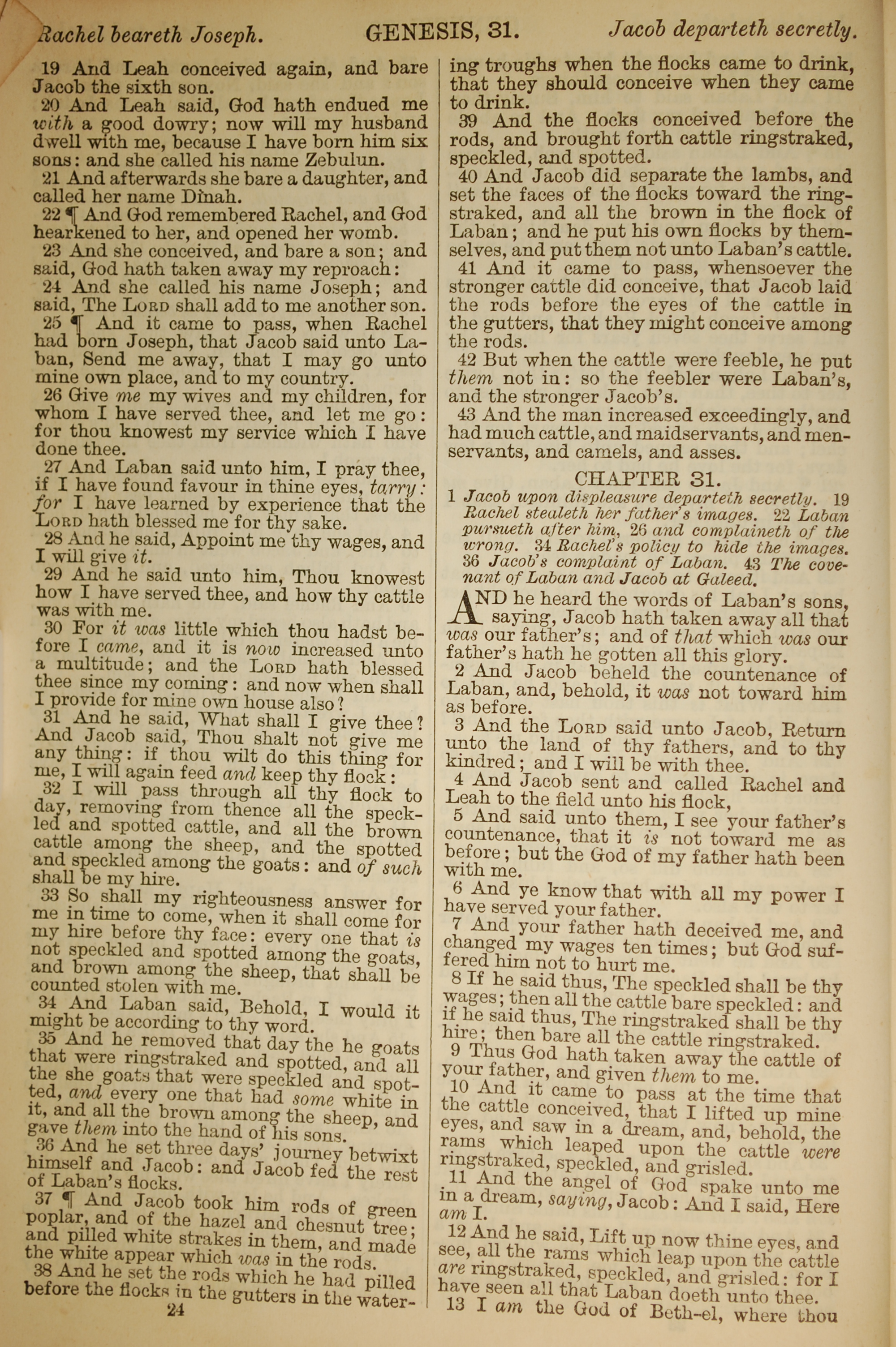 1886年英文聖經 創世記 30 章 19 節到 31 章 13 節