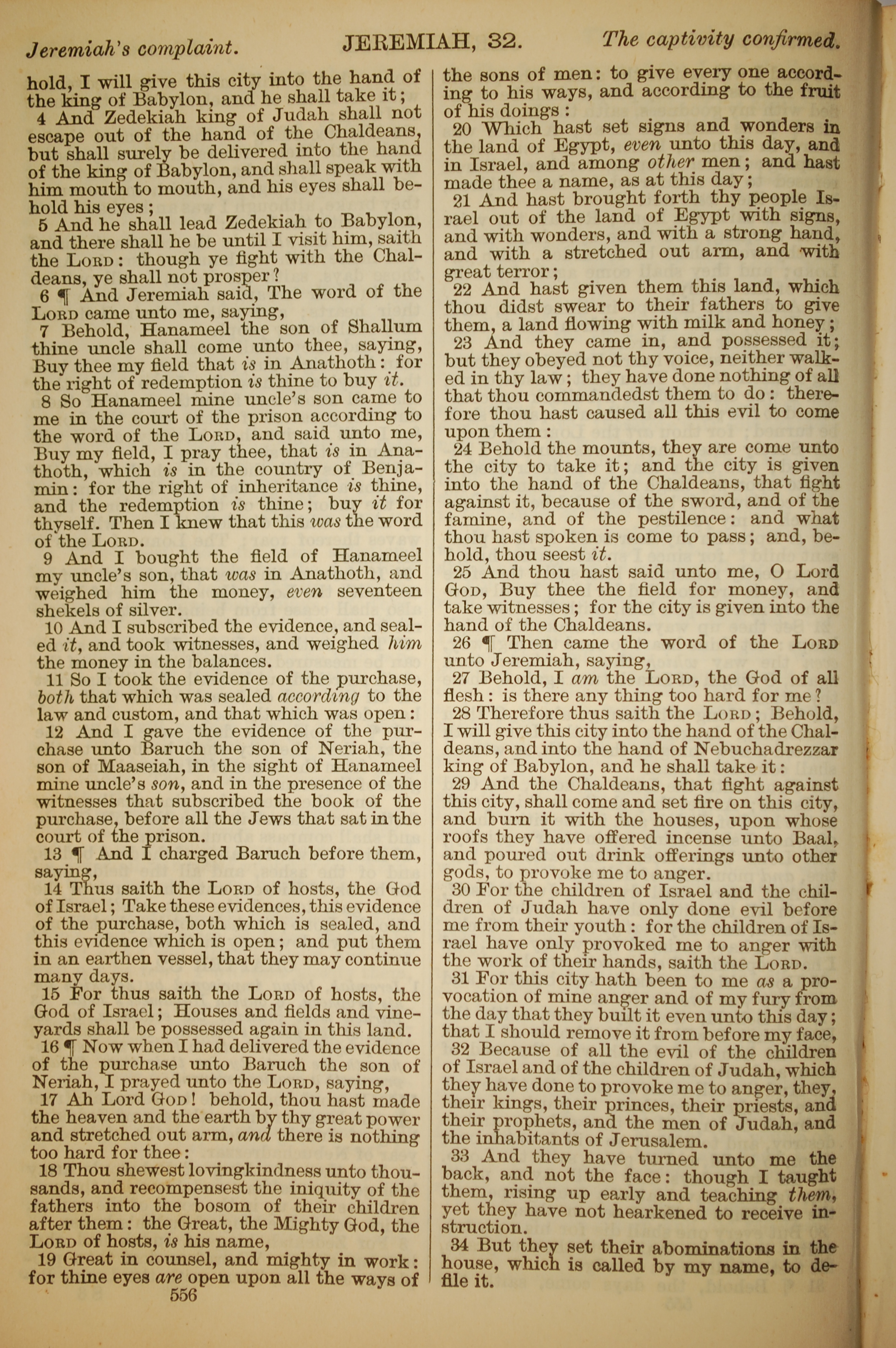 1886年英文聖經 耶利米書 32 章 4 節到 32 章 34 節