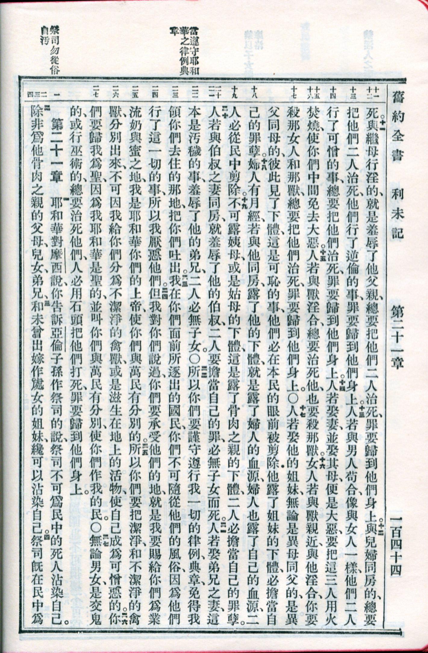 1959年新舊約全書 利未記 20 章 11 節到 21 章 4 節