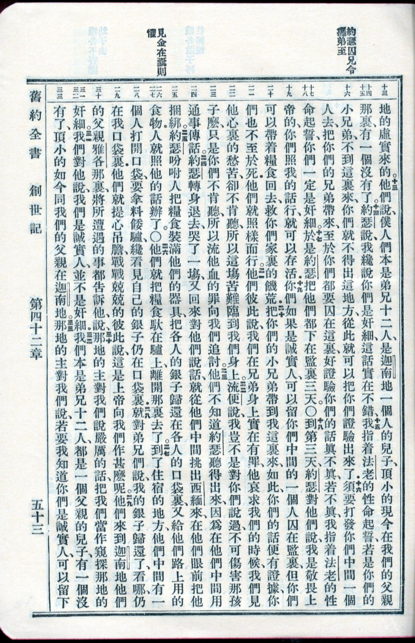 1959年新舊約全書 創世記 42 章 13 節到 42 章 33 節