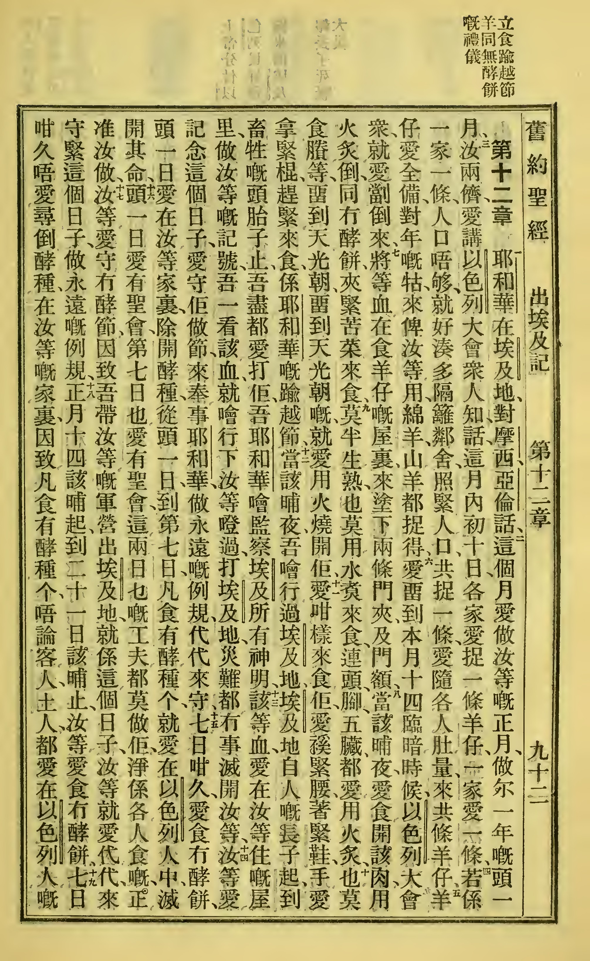 1923年客話新舊約聖經漢字版 出埃及記 12 章 1 節到 12 章 19 節