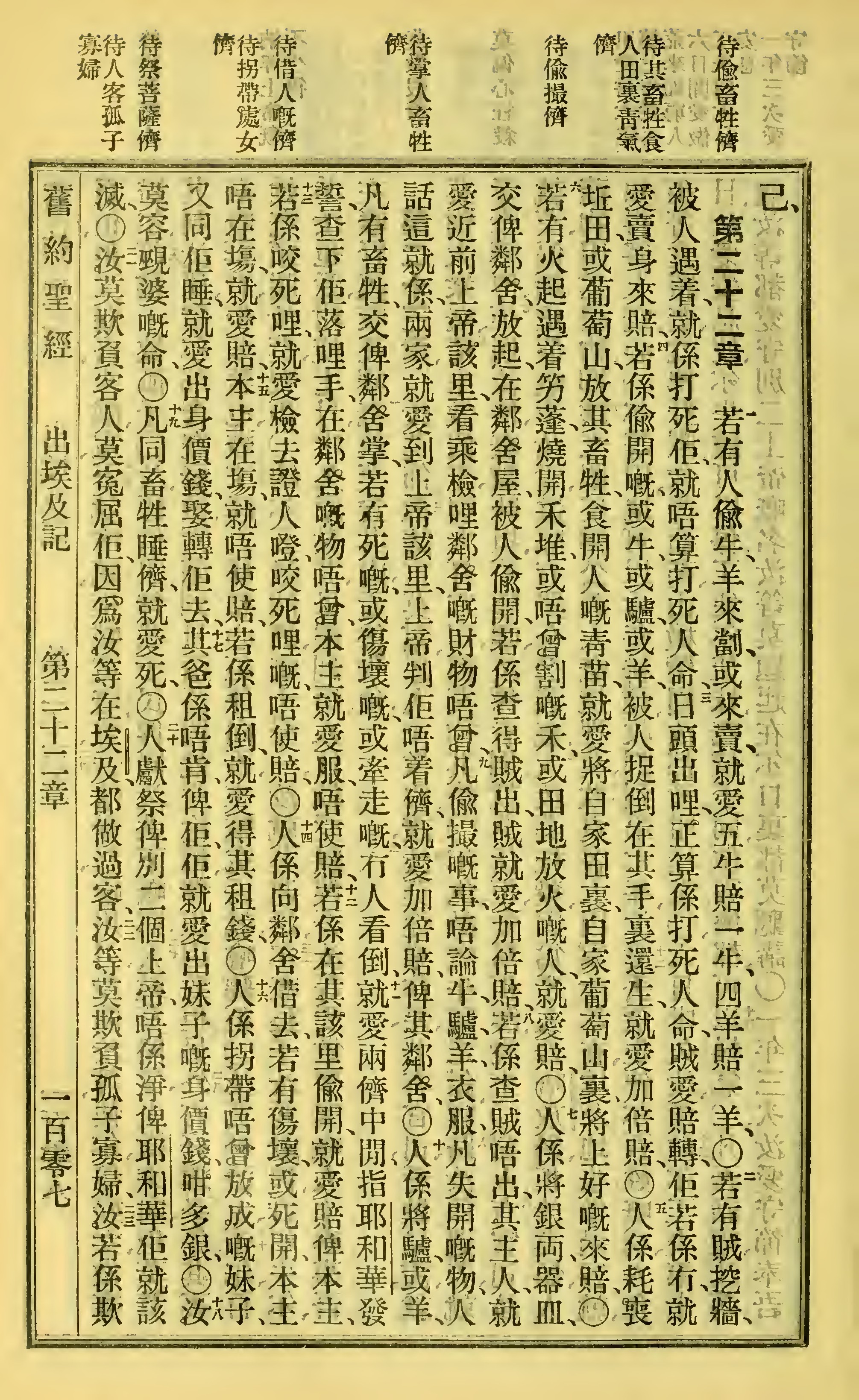 1923年客話新舊約聖經漢字版 出埃及記 22 章 1 節到 22 章 22 節