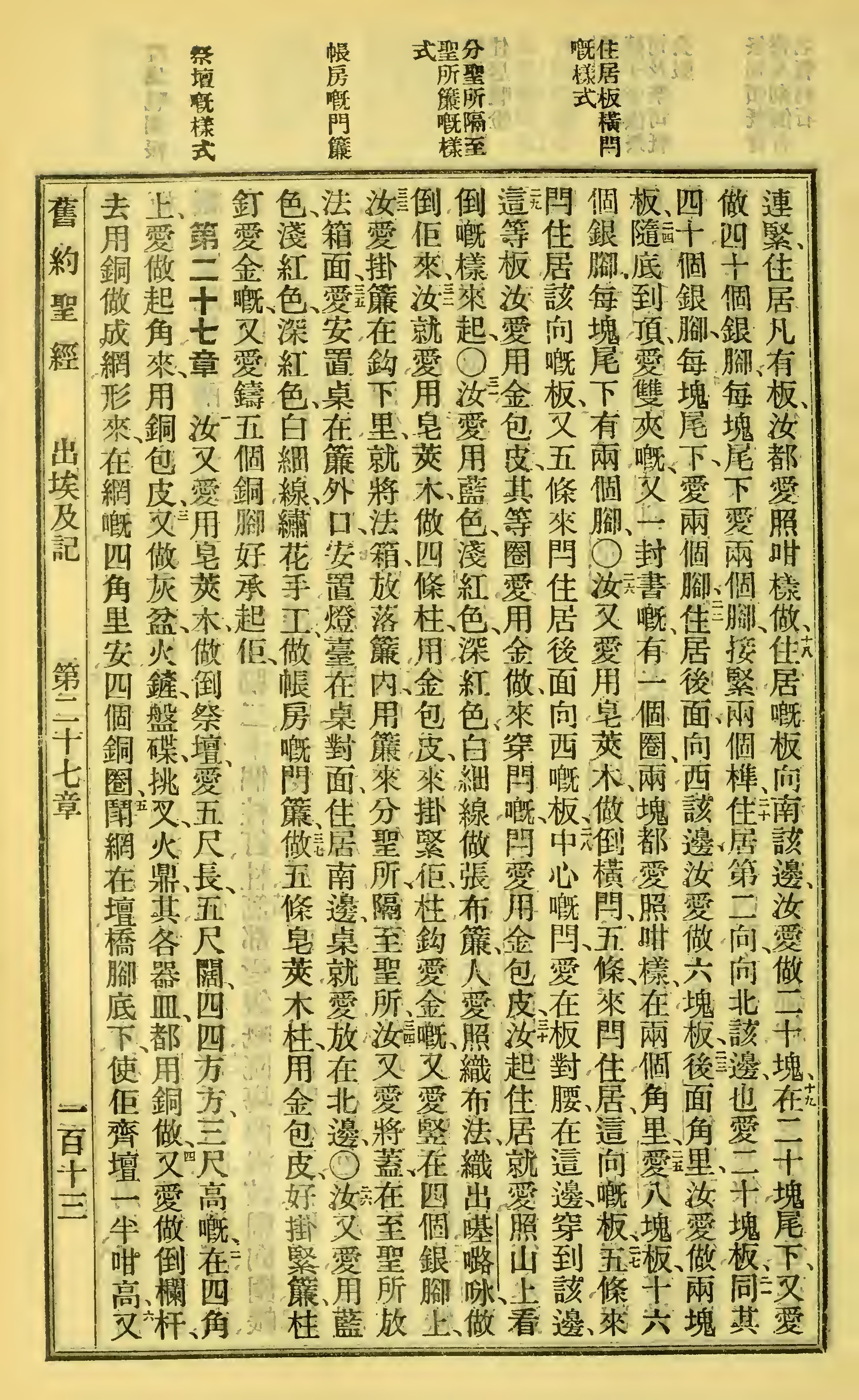 1923年客話新舊約聖經漢字版 出埃及記 26 章 17 節到 27 章 5 節