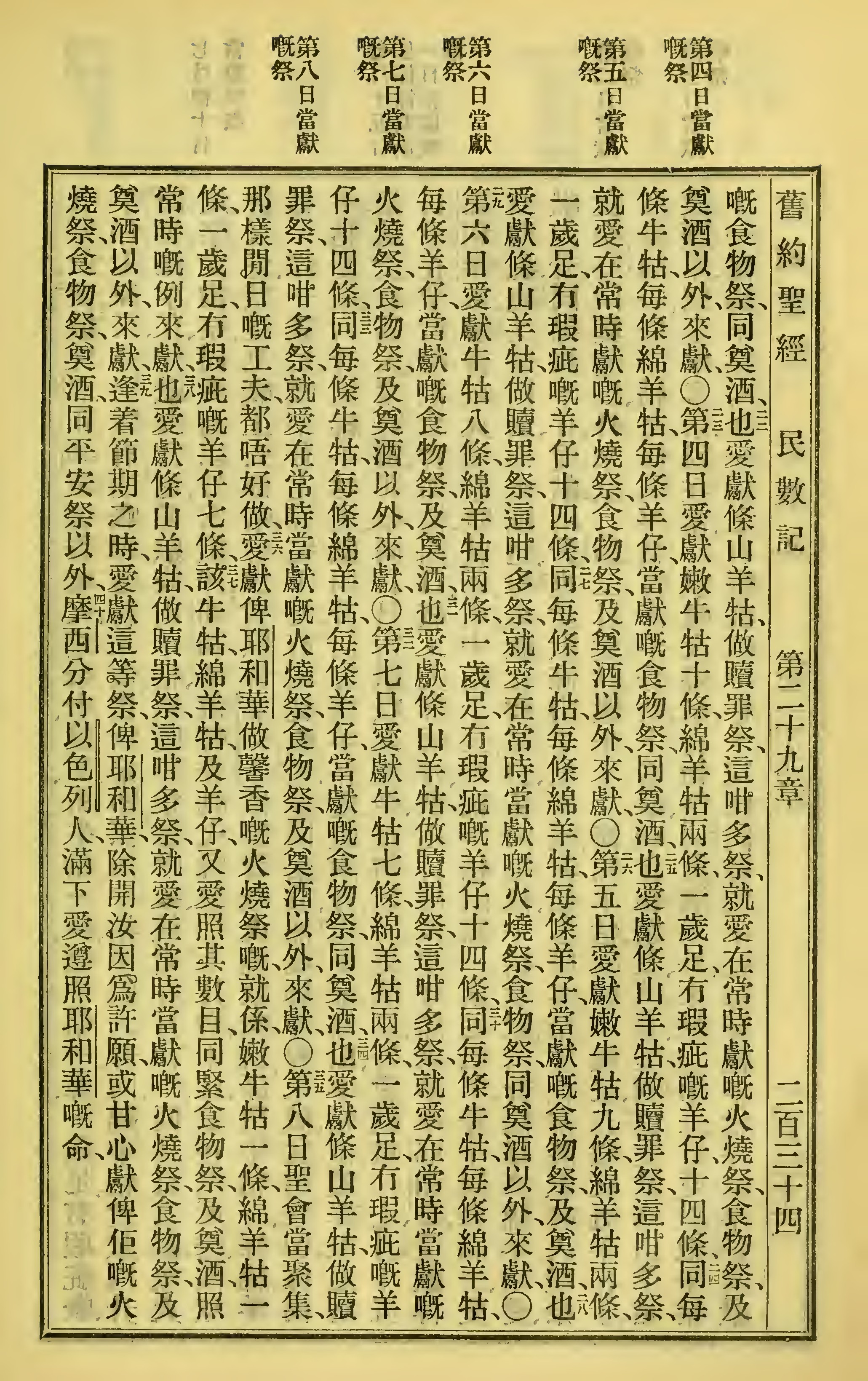 1923年客話新舊約聖經漢字版 民數記 29 章 22 節到 29 章 40 節