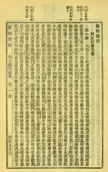 1923年客話新舊約聖經漢字版 列王紀上 1 章 1 節到 1 章 13 節