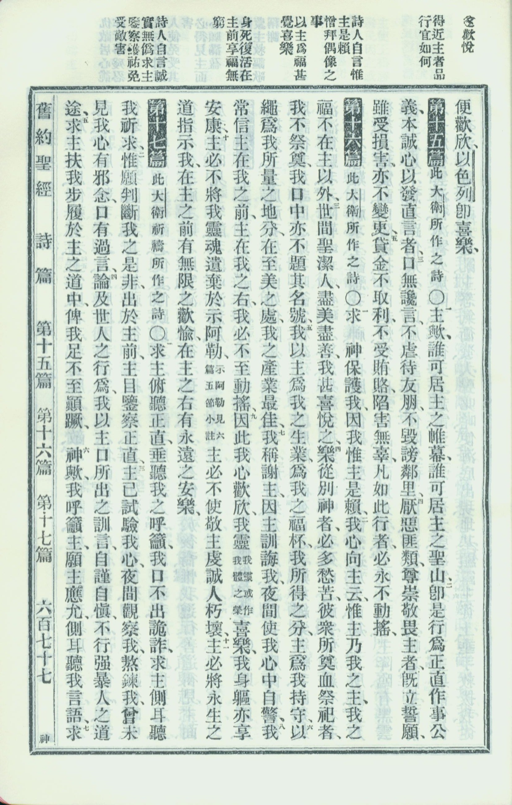1913年新舊約全書 詩篇 15 章 1 節到 17 章 6 節