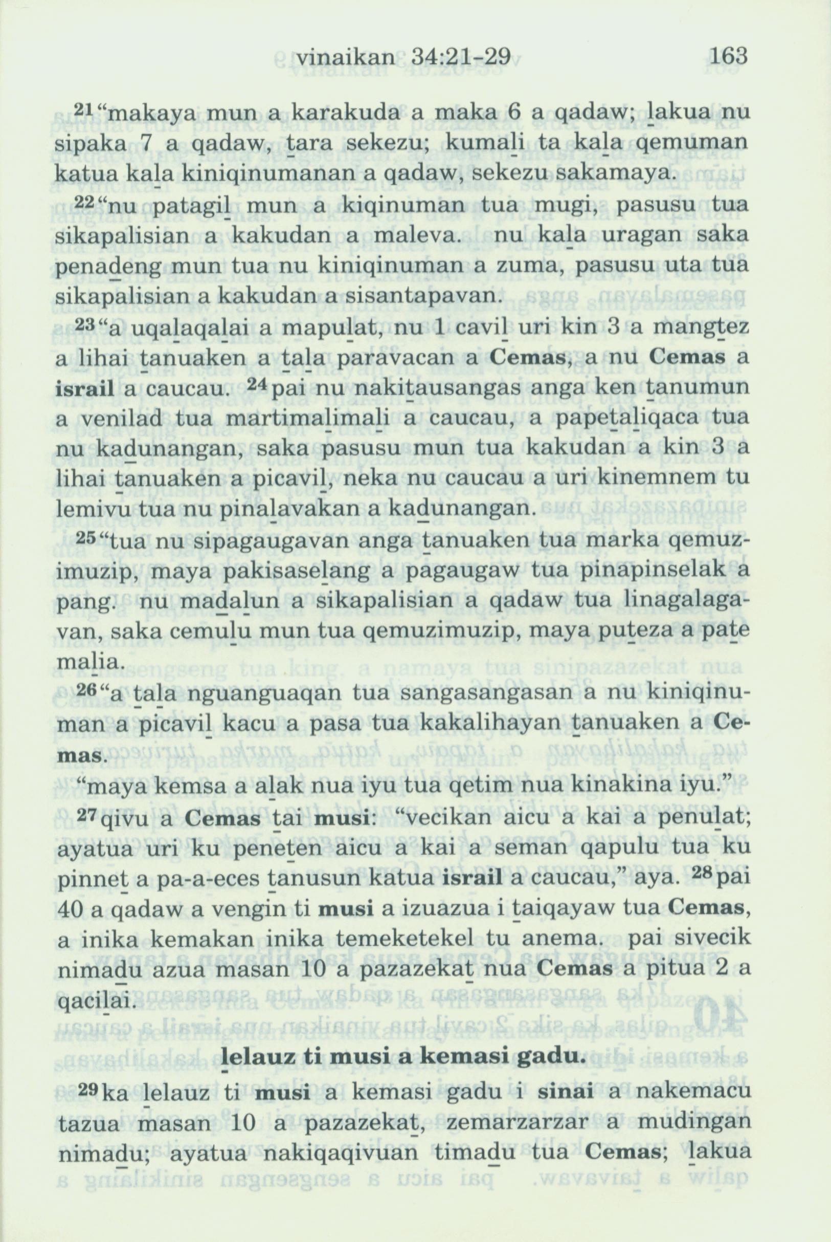 1993年新舊約全書 出埃及記 34 章 21 節到 34 章 29 節