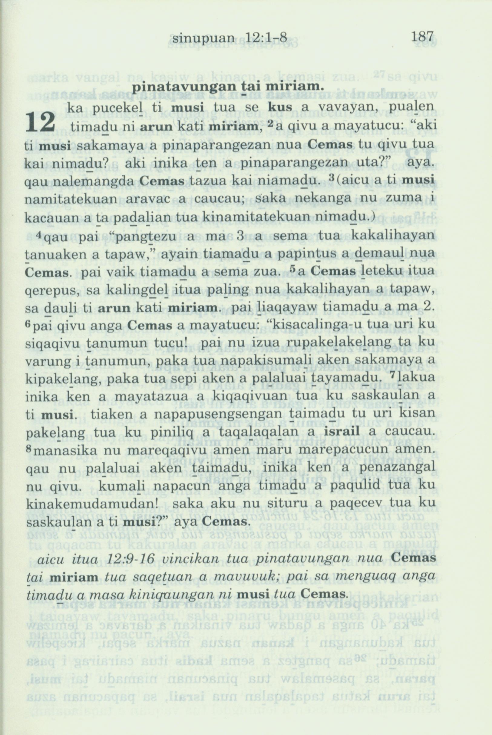 1993年新舊約全書 民數記 12 章 1 節到 12 章 8 節