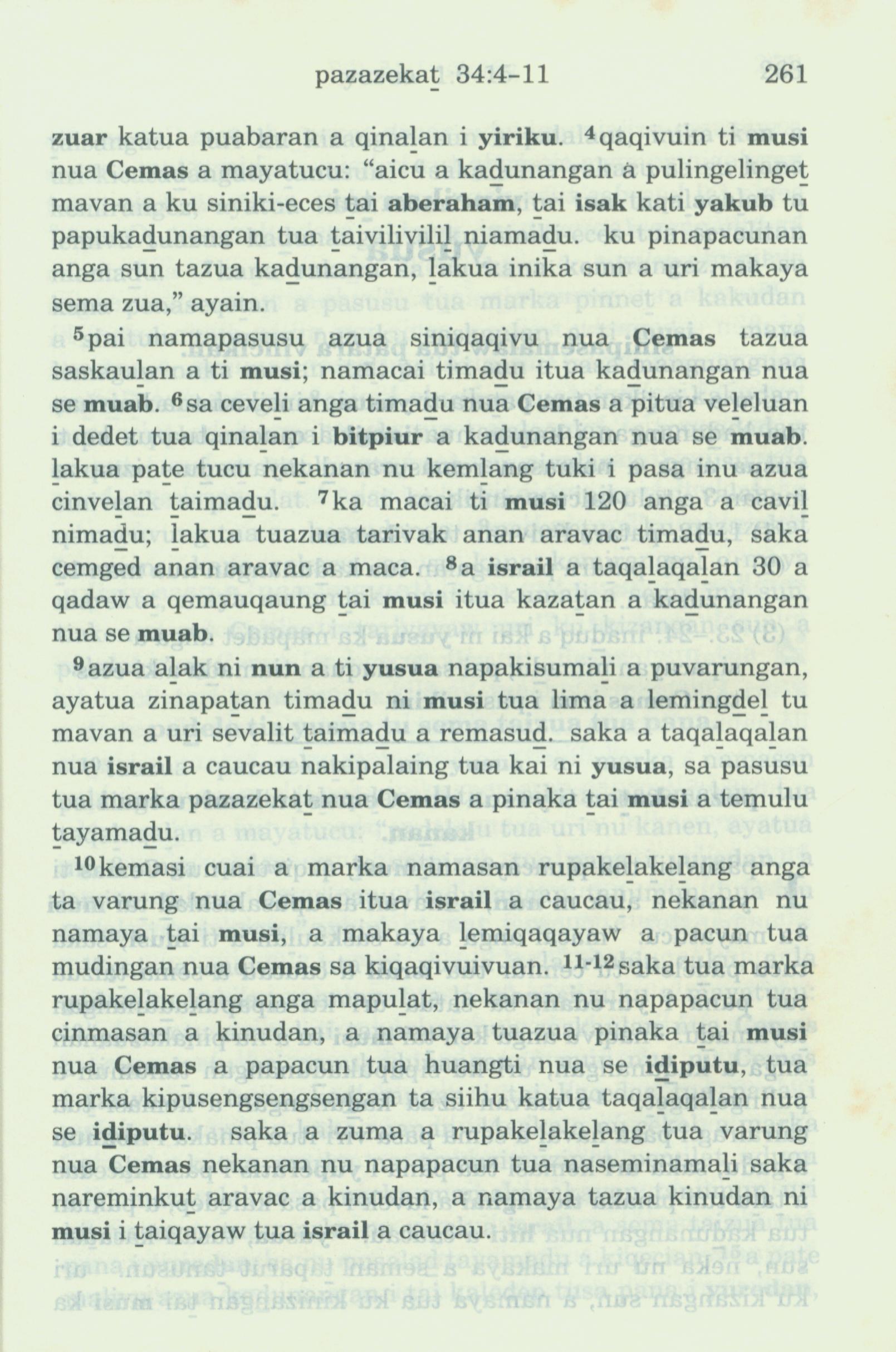 1993年新舊約全書 申命記 34 章 4 節到 34 章 12 節