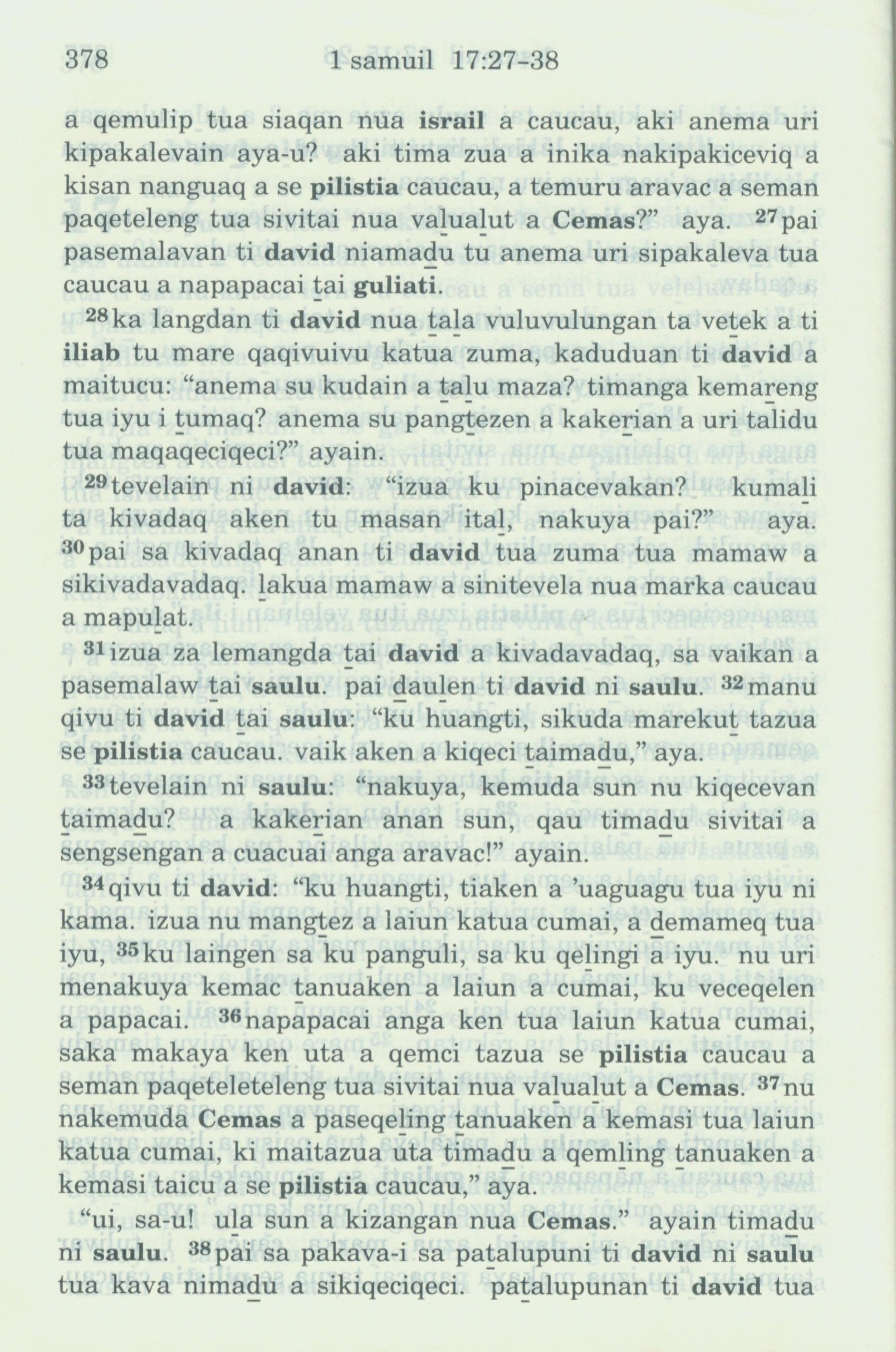1993年新舊約全書 撒母耳記上 17 章 27 節到 17 章 38 節