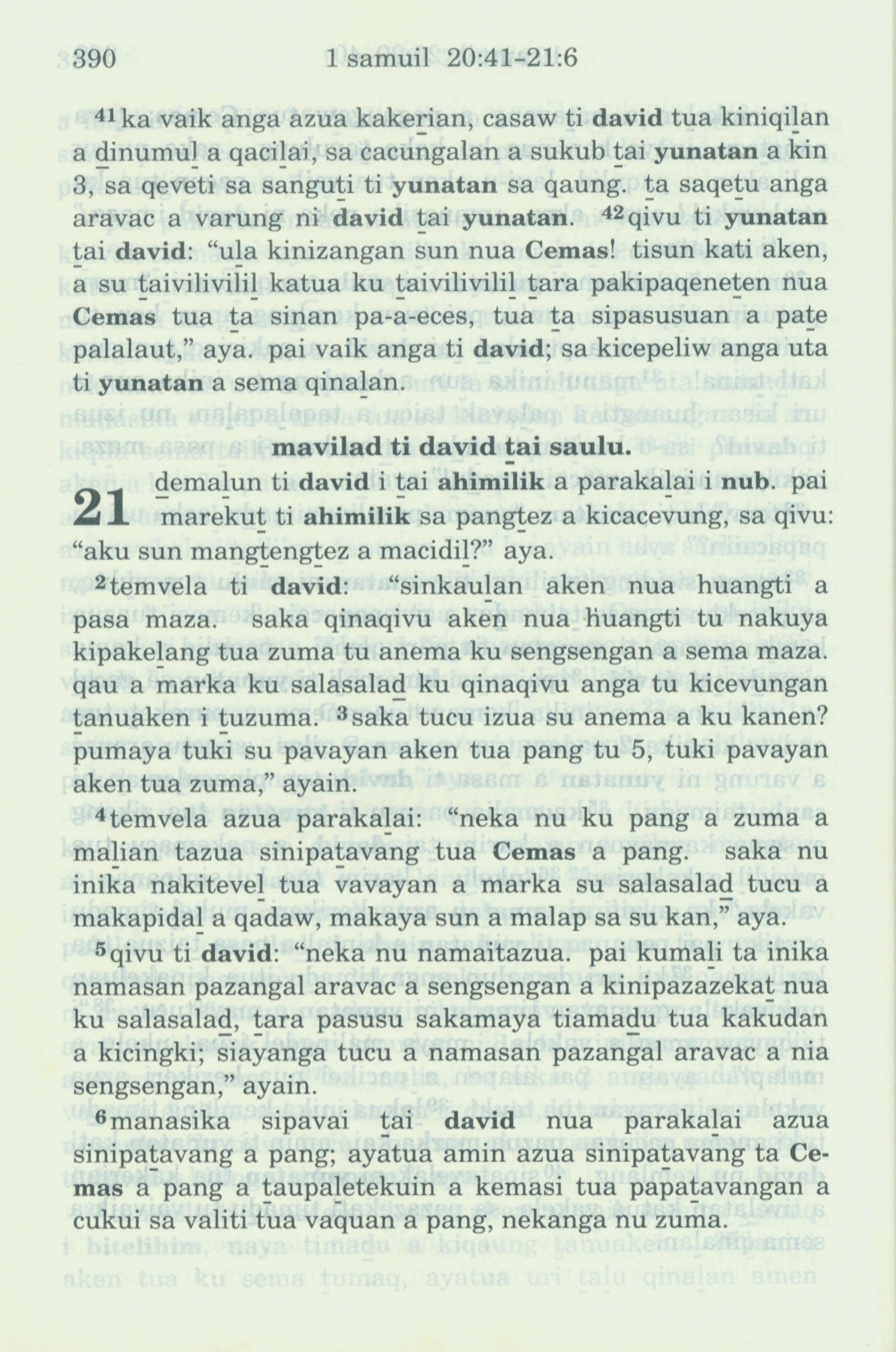 1993年新舊約全書 撒母耳記上 20 章 41 節到 21 章 6 節