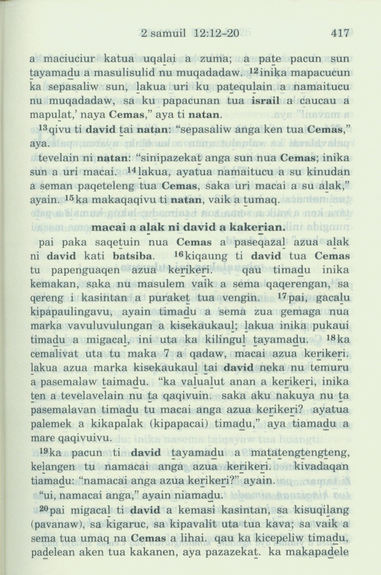 1993年新舊約全書 撒母耳記下 12 章 12 節到 12 章 20 節