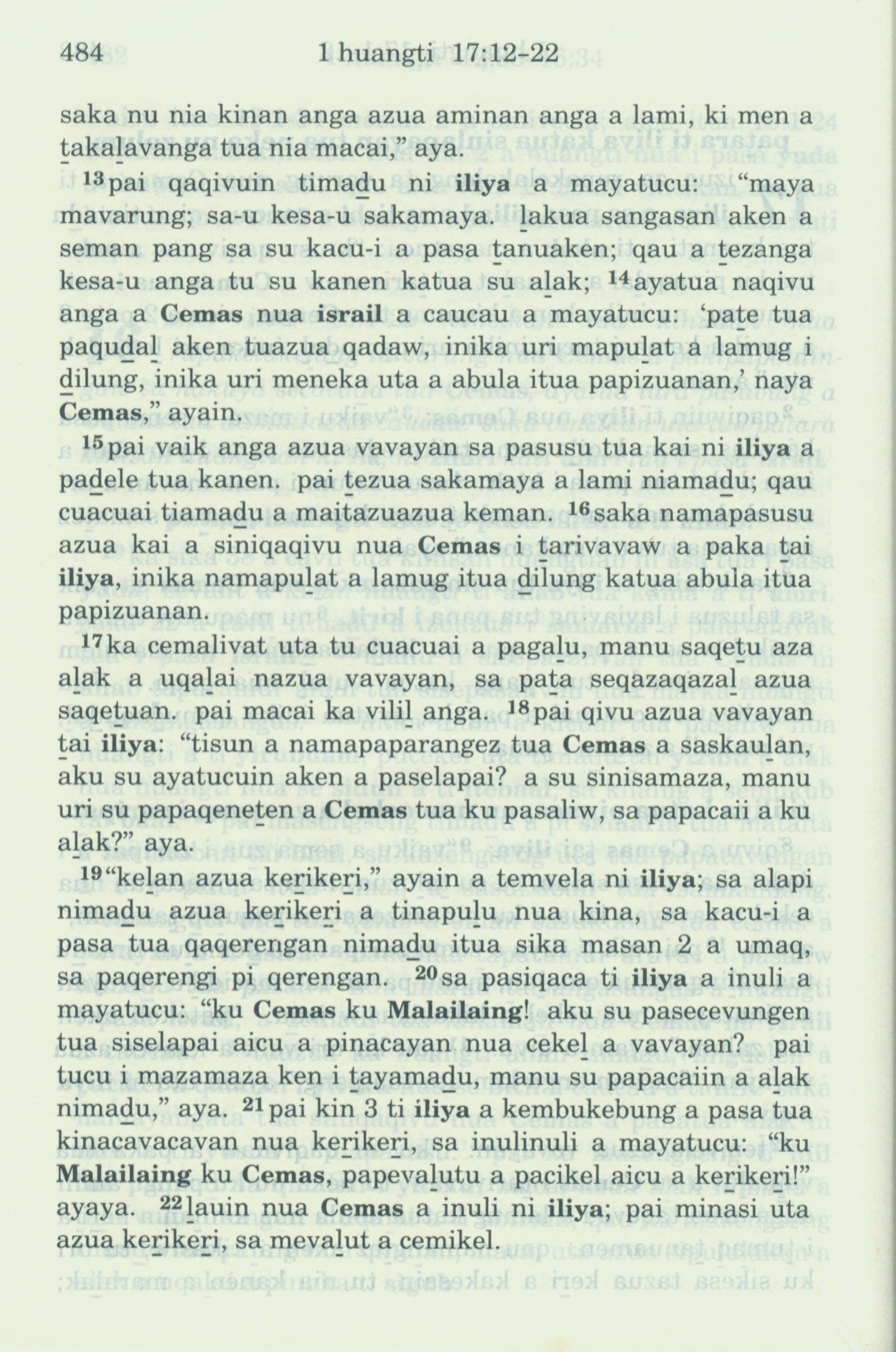 1993年新舊約全書 列王紀上 17 章 13 節到 17 章 22 節