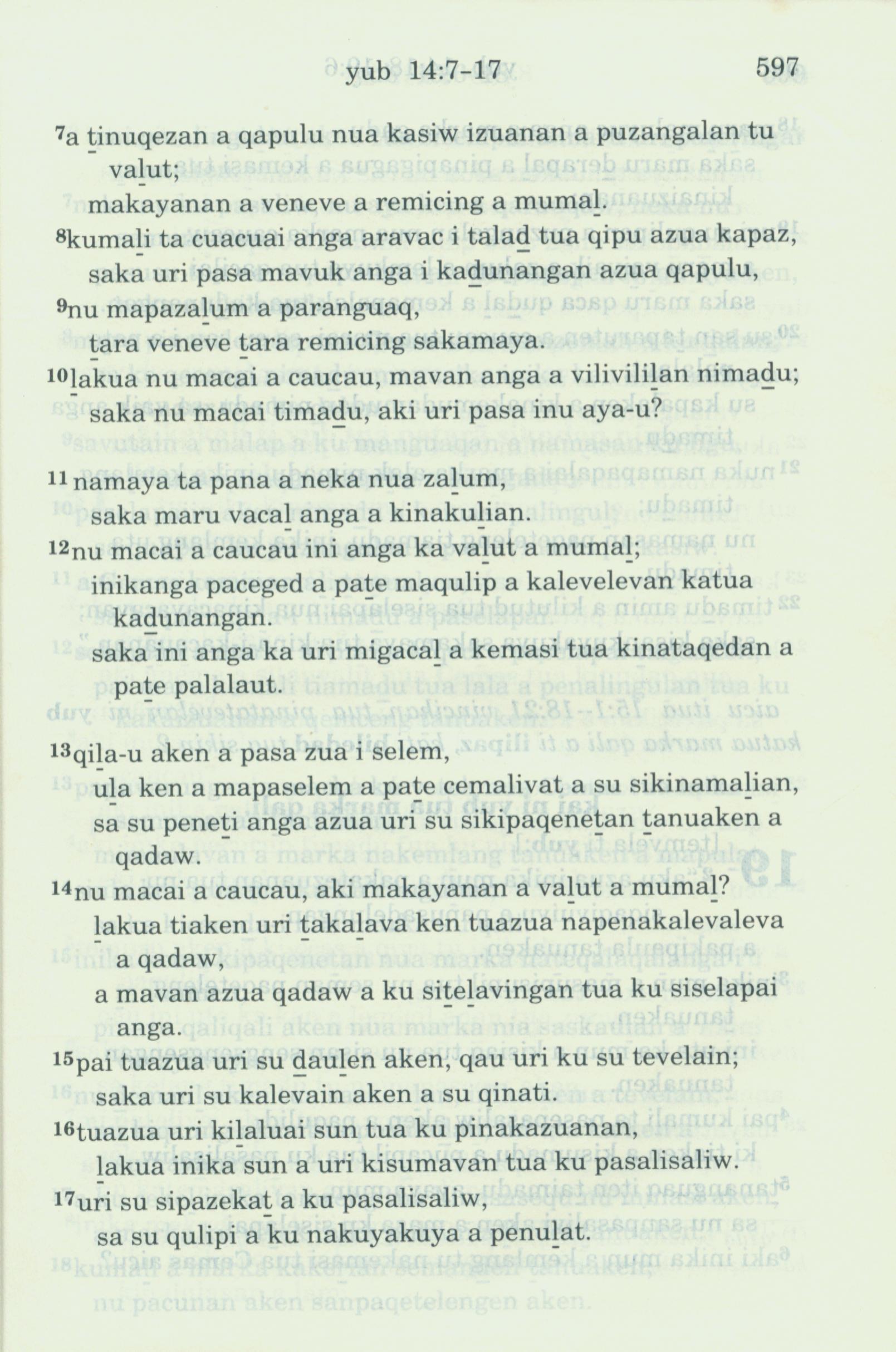 1993年新舊約全書 約伯記 14 章 7 節到 14 章 17 節