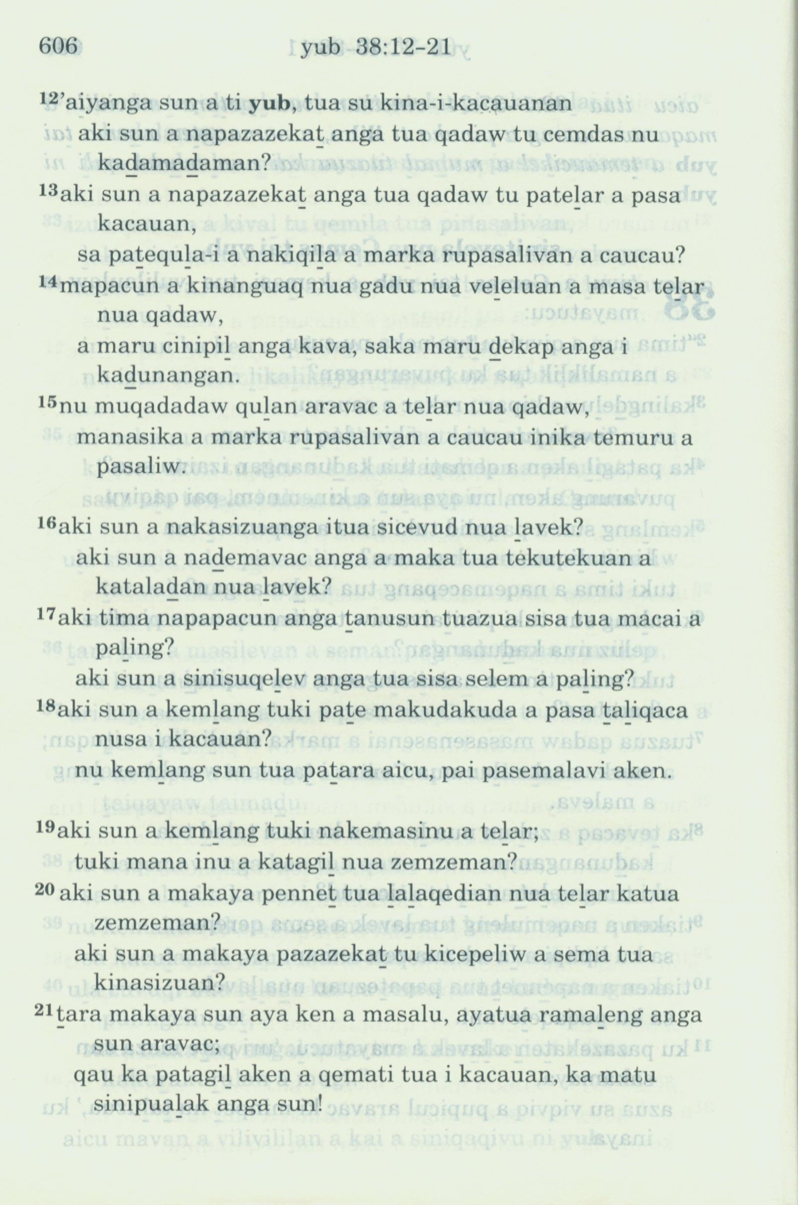 1993年新舊約全書 約伯記 38 章 12 節到 38 章 21 節