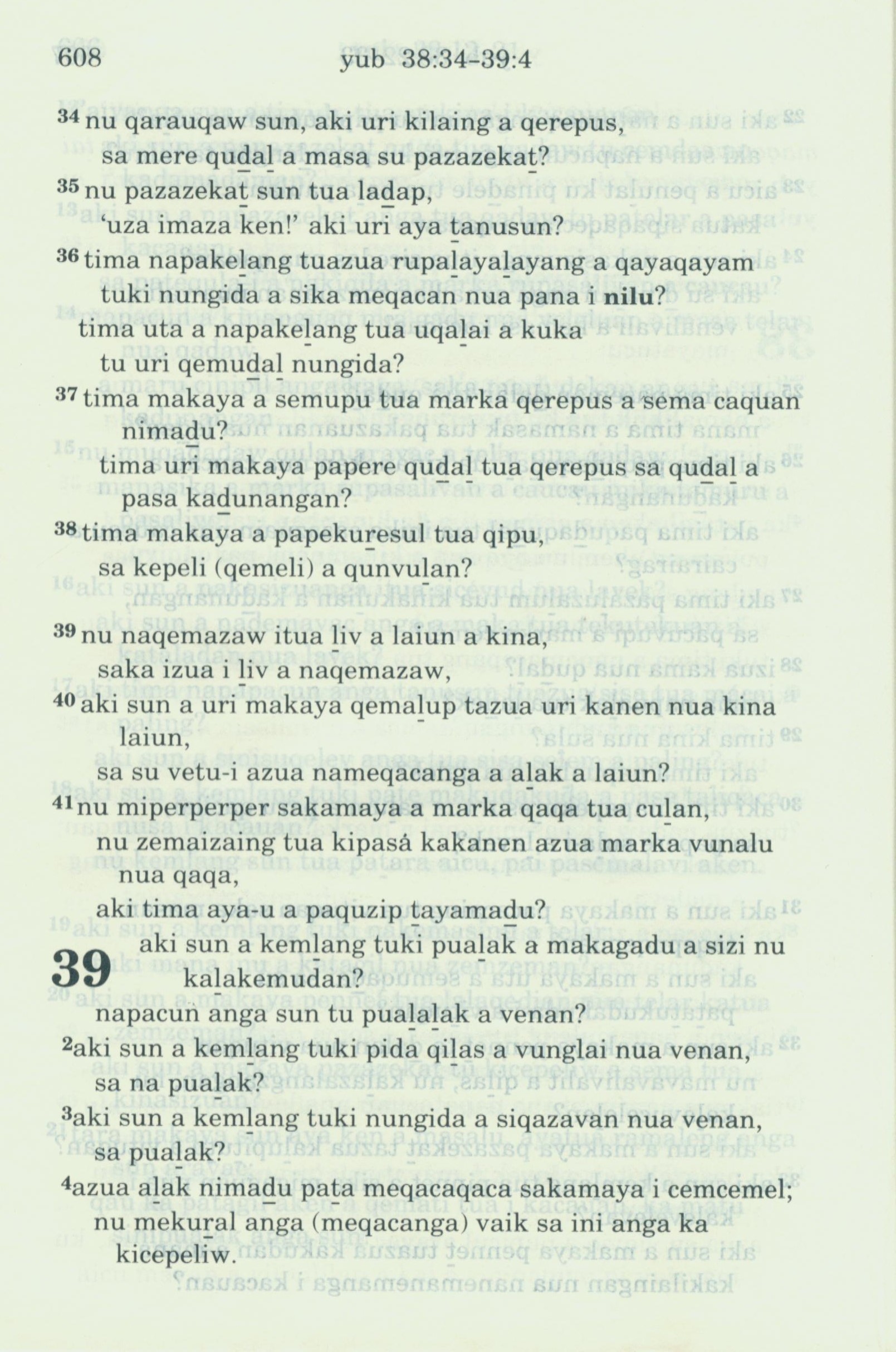 1993年新舊約全書 約伯記 38 章 34 節到 39 章 4 節