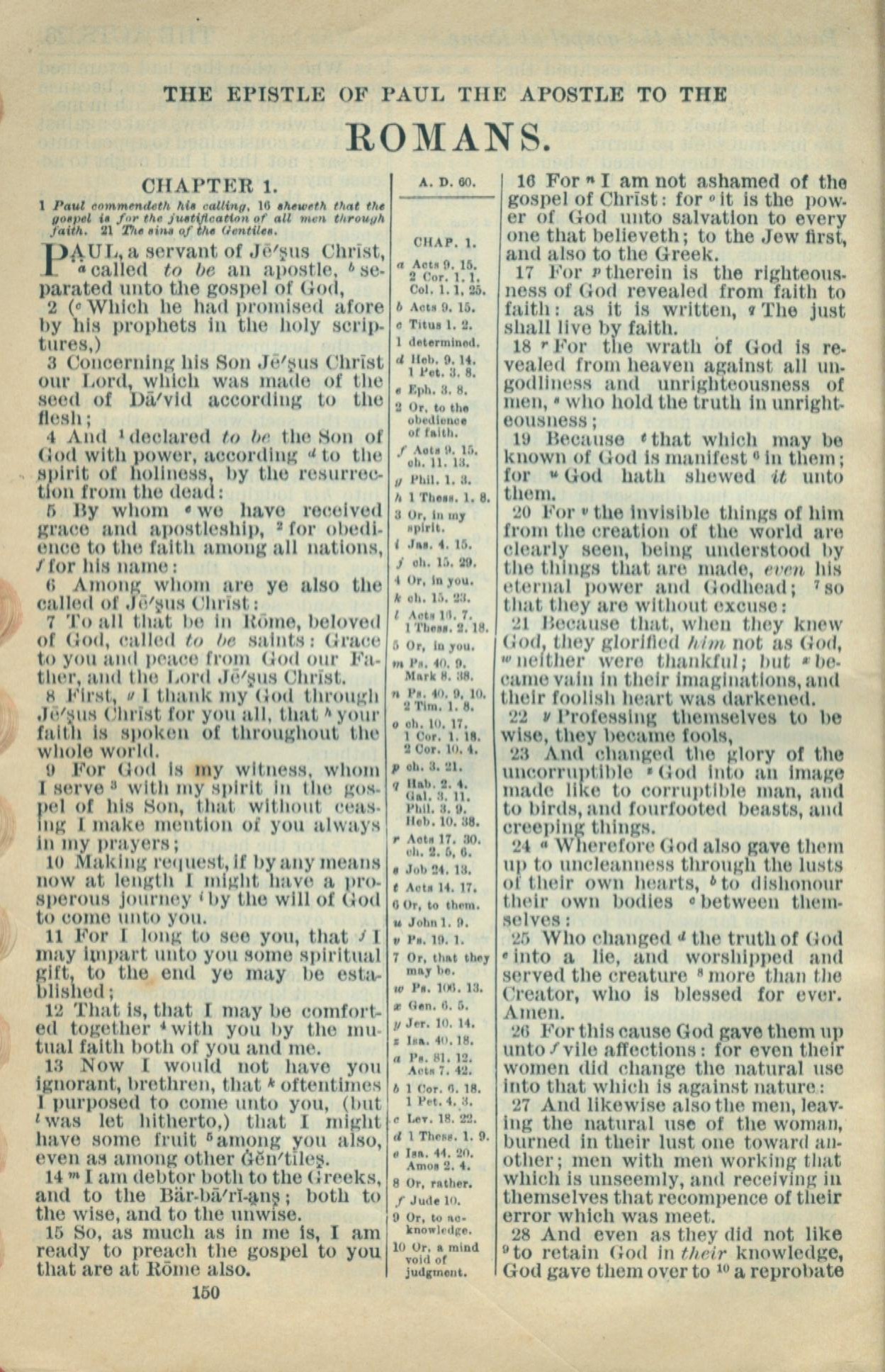 1916年Holy Bible 羅馬書 1 章 1 節到 1 章 28 節