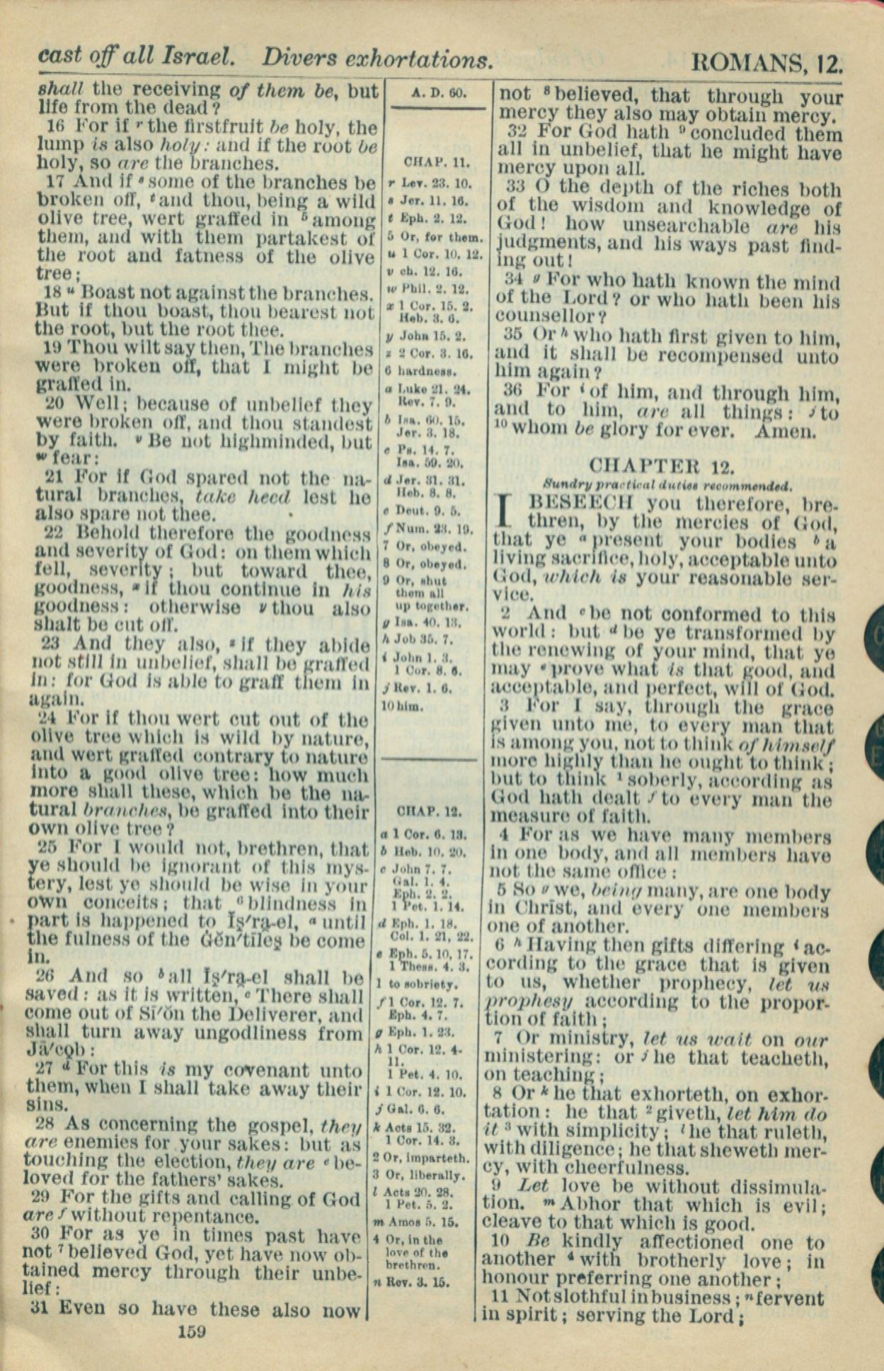 1916年Holy Bible 羅馬書 11 章 16 節到 12 章 11 節