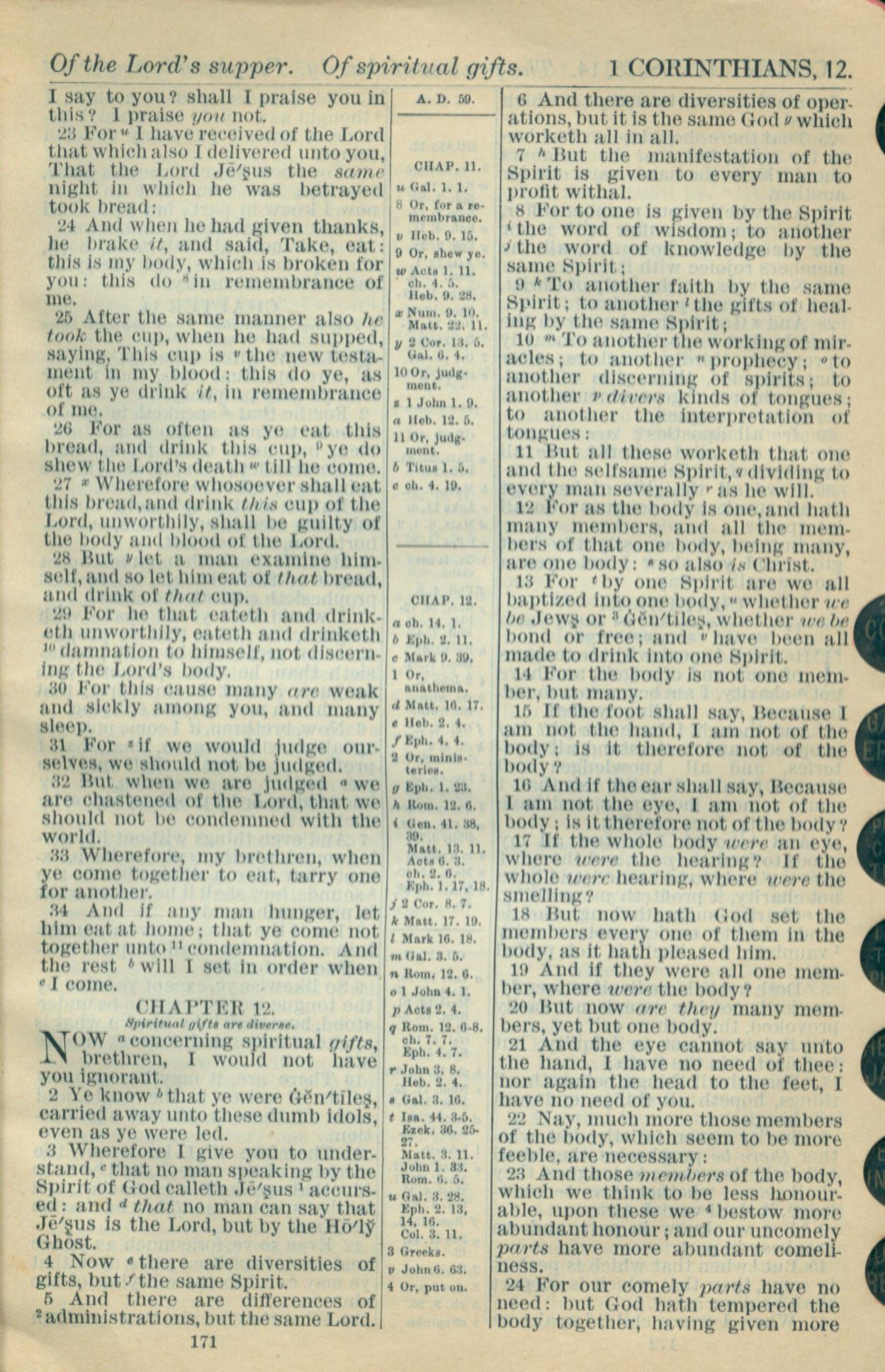 1916年Holy Bible 哥林多前書 11 章 23 節到 12 章 24 節