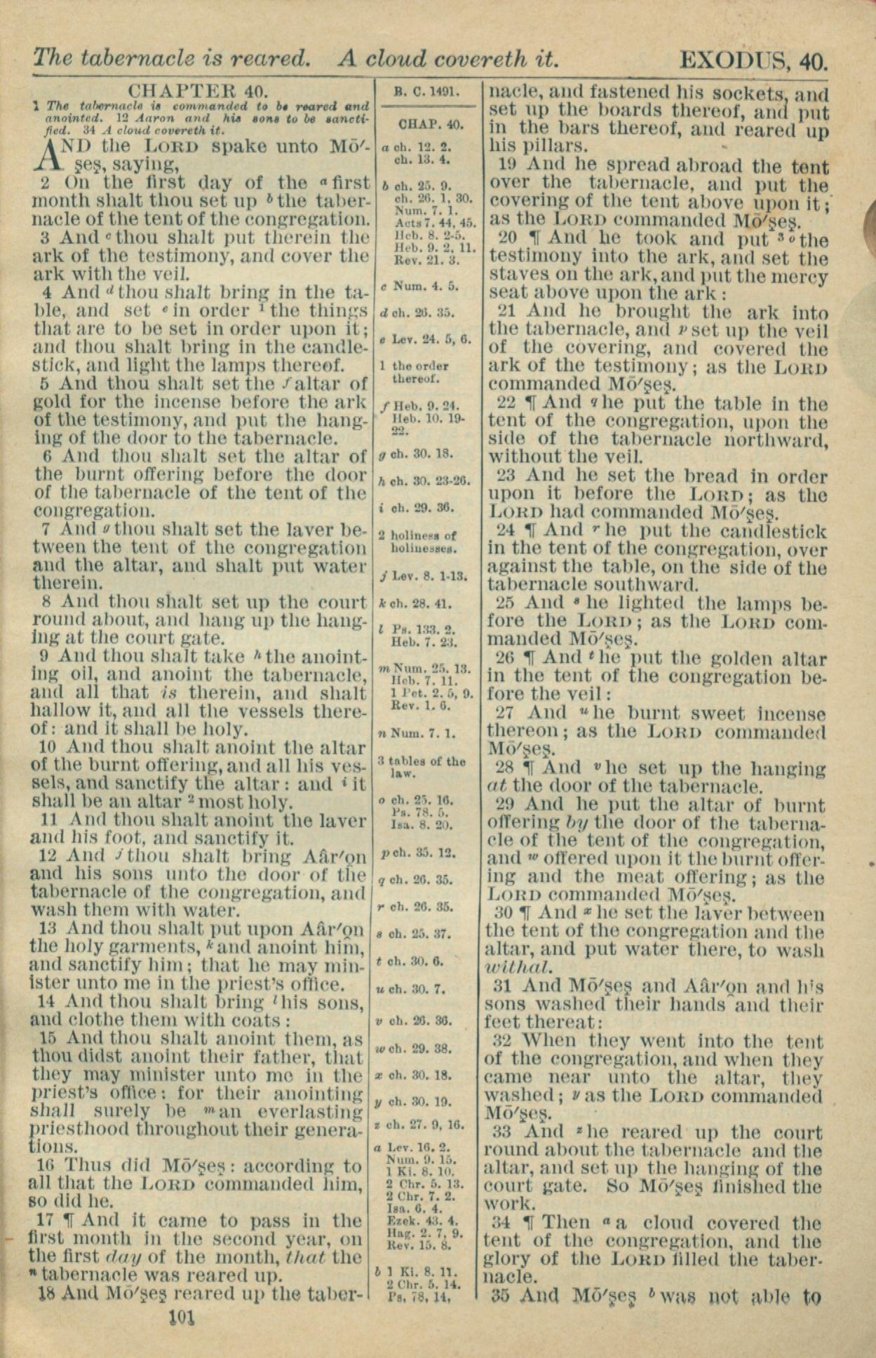 1916年Holy Bible 出埃及記 40 章 1 節到 40 章 35 節