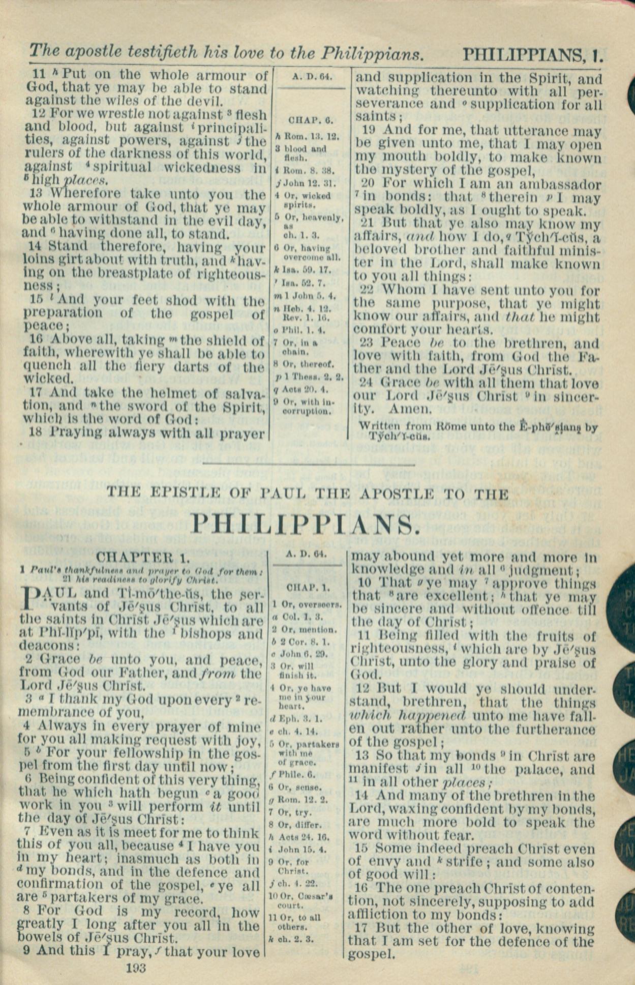 1916年Holy Bible 腓立比書 1 章 1 節到 1 章 17 節