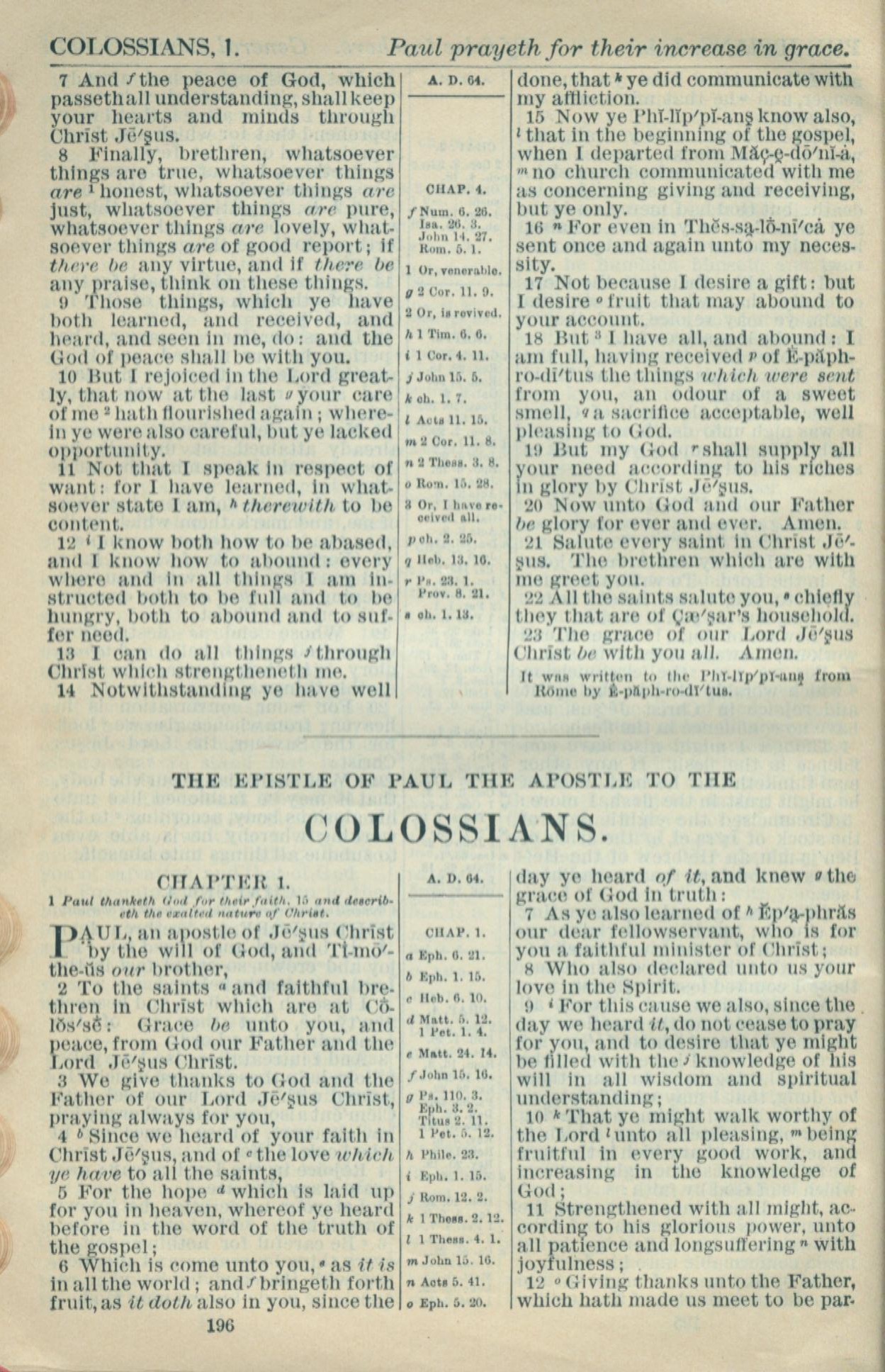 1916年Holy Bible 歌羅西書 1 章 1 節到 1 章 12 節