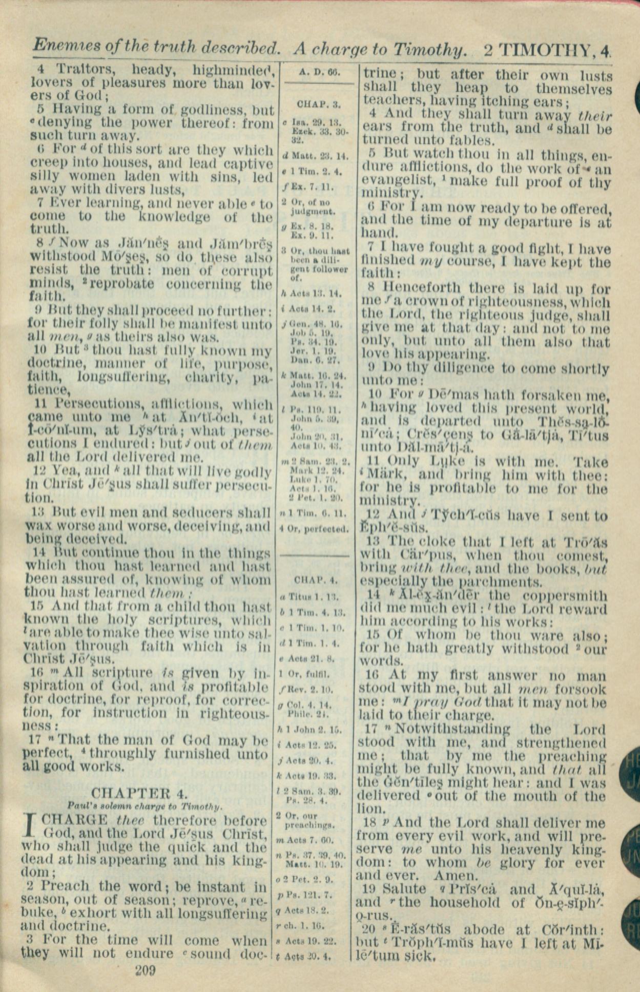 1916年Holy Bible 提摩太後書 3 章 4 節到 4 章 20 節