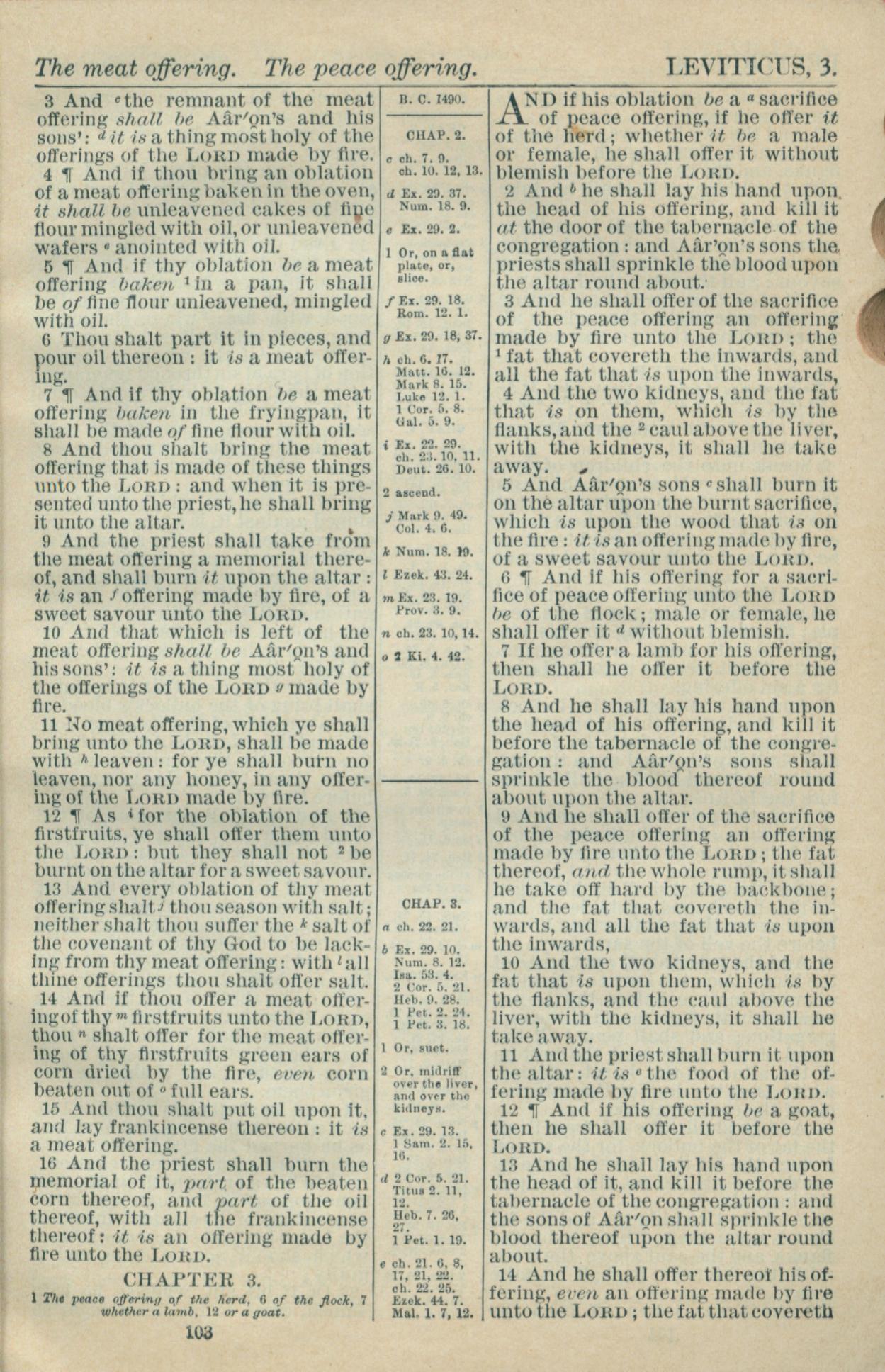 1916年Holy Bible 利未記 2 章 3 節到 3 章 14 節