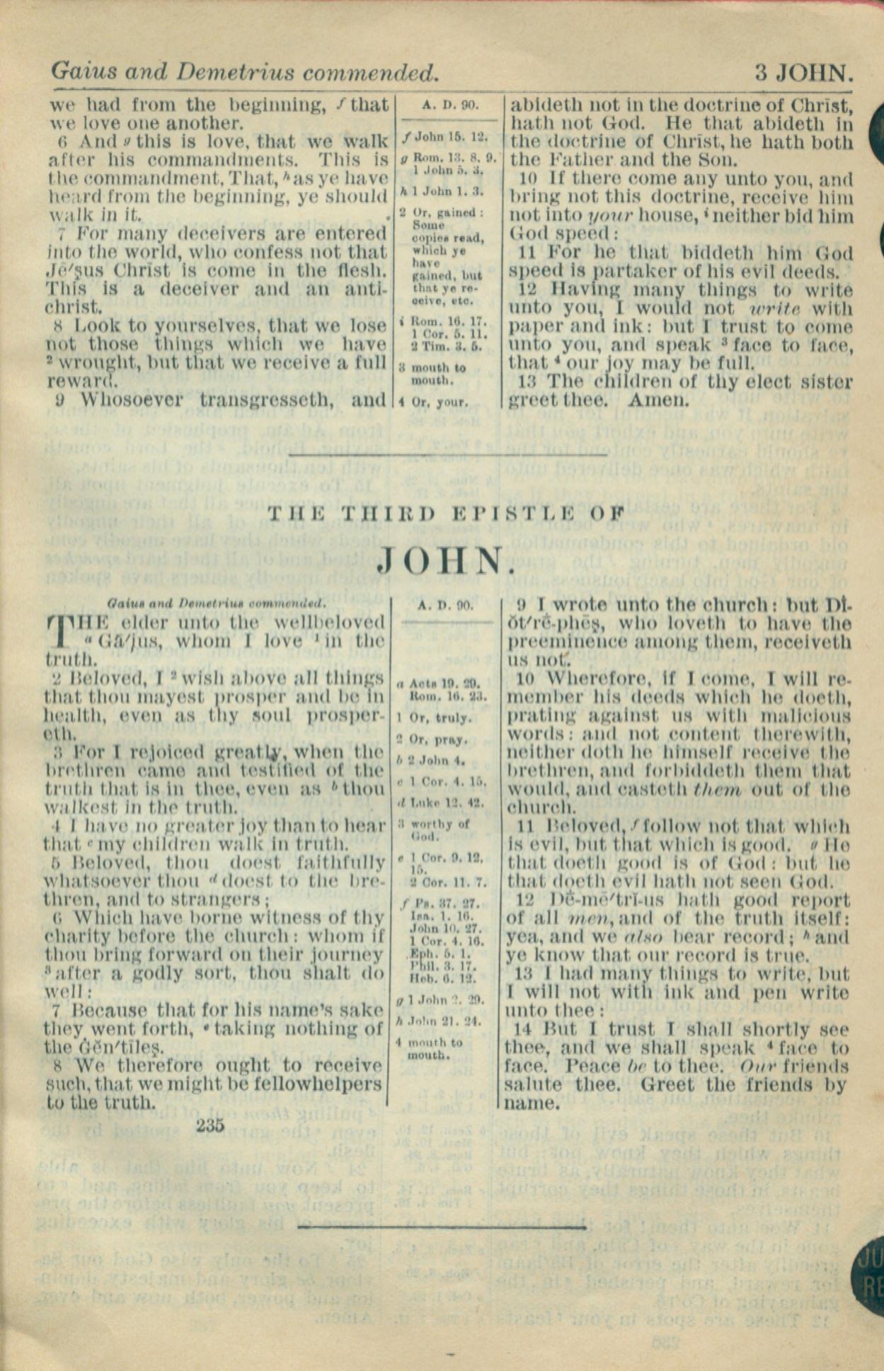 1916年Holy Bible 約翰二書 1 章 6 節到 1 章 13 節