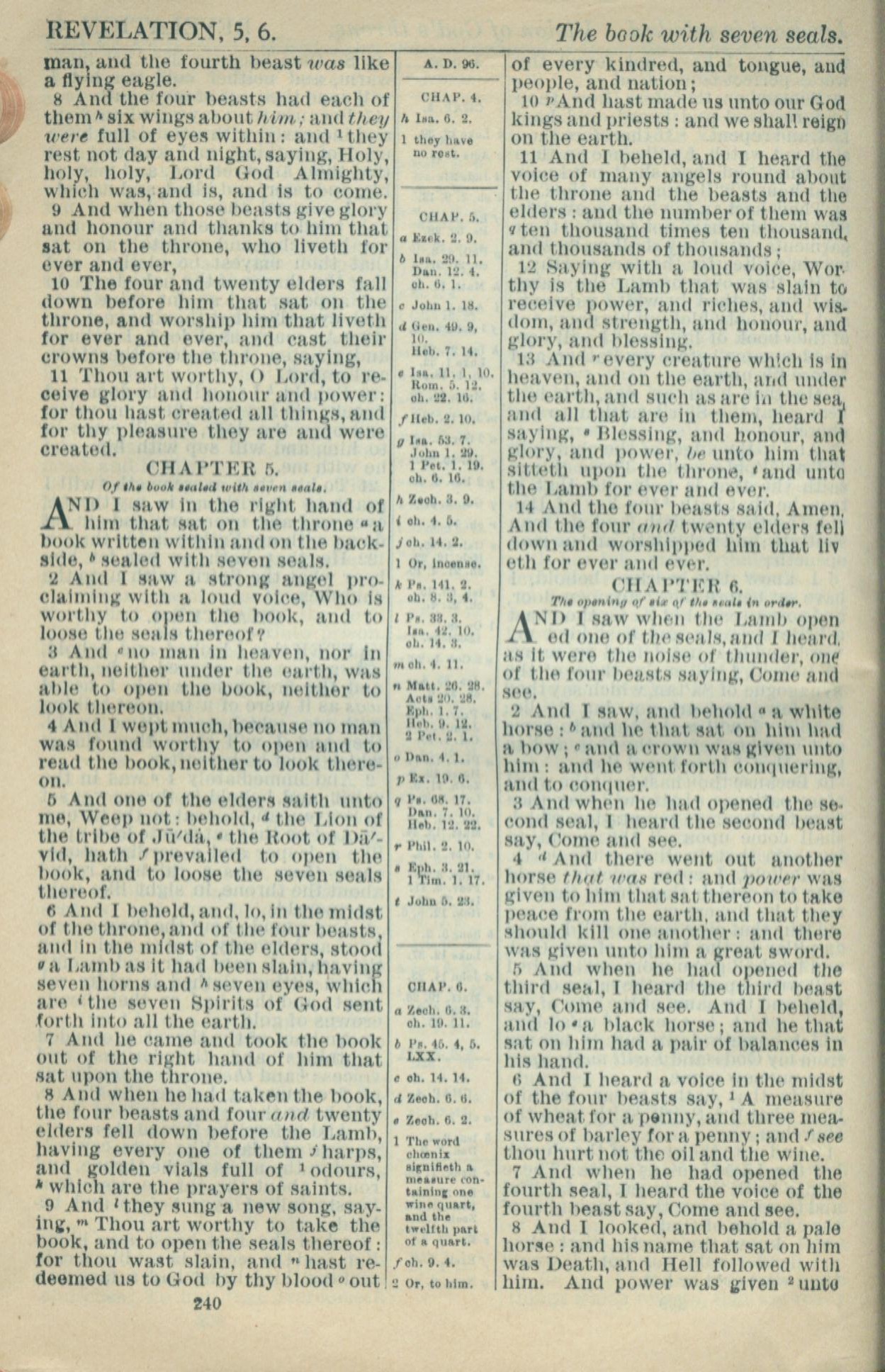 1916年Holy Bible 啟示錄 4 章 8 節到 6 章 8 節