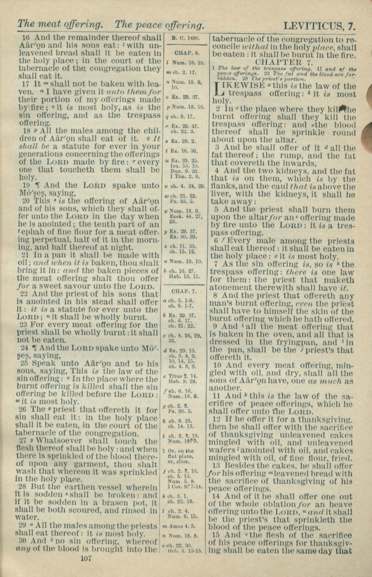 1916年Holy Bible 利未記 6 章 16 節到 7 章 15 節