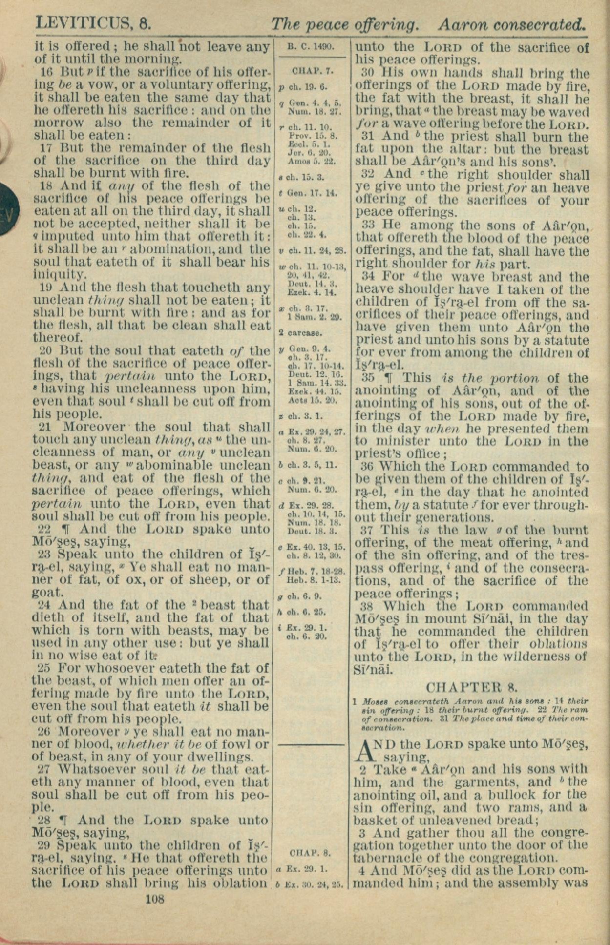 1916年Holy Bible 利未記 7 章 16 節到 8 章 4 節