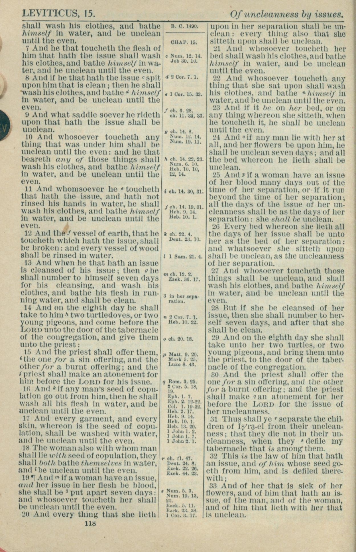1916年Holy Bible 利未記 15 章 7 節到 15 章 33 節