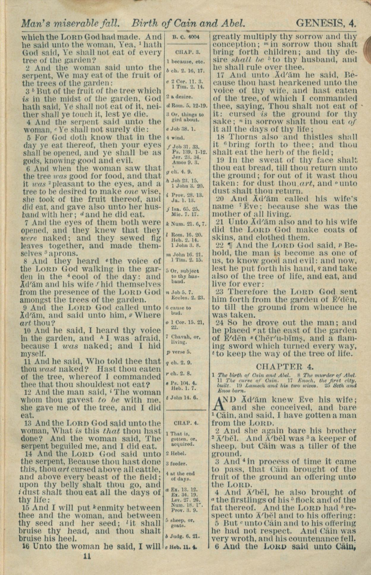 1916年Holy Bible 創世記 3 章 2 節到 4 章 6 節