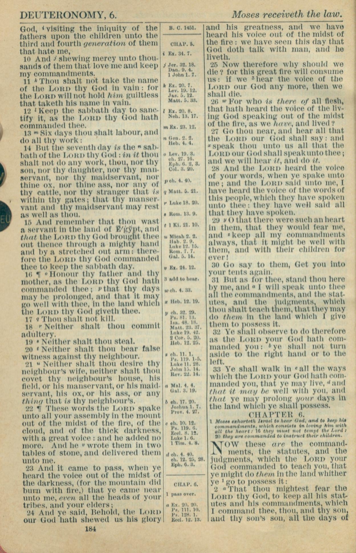 1916年Holy Bible 申命記 5 章 10 節到 6 章 2 節