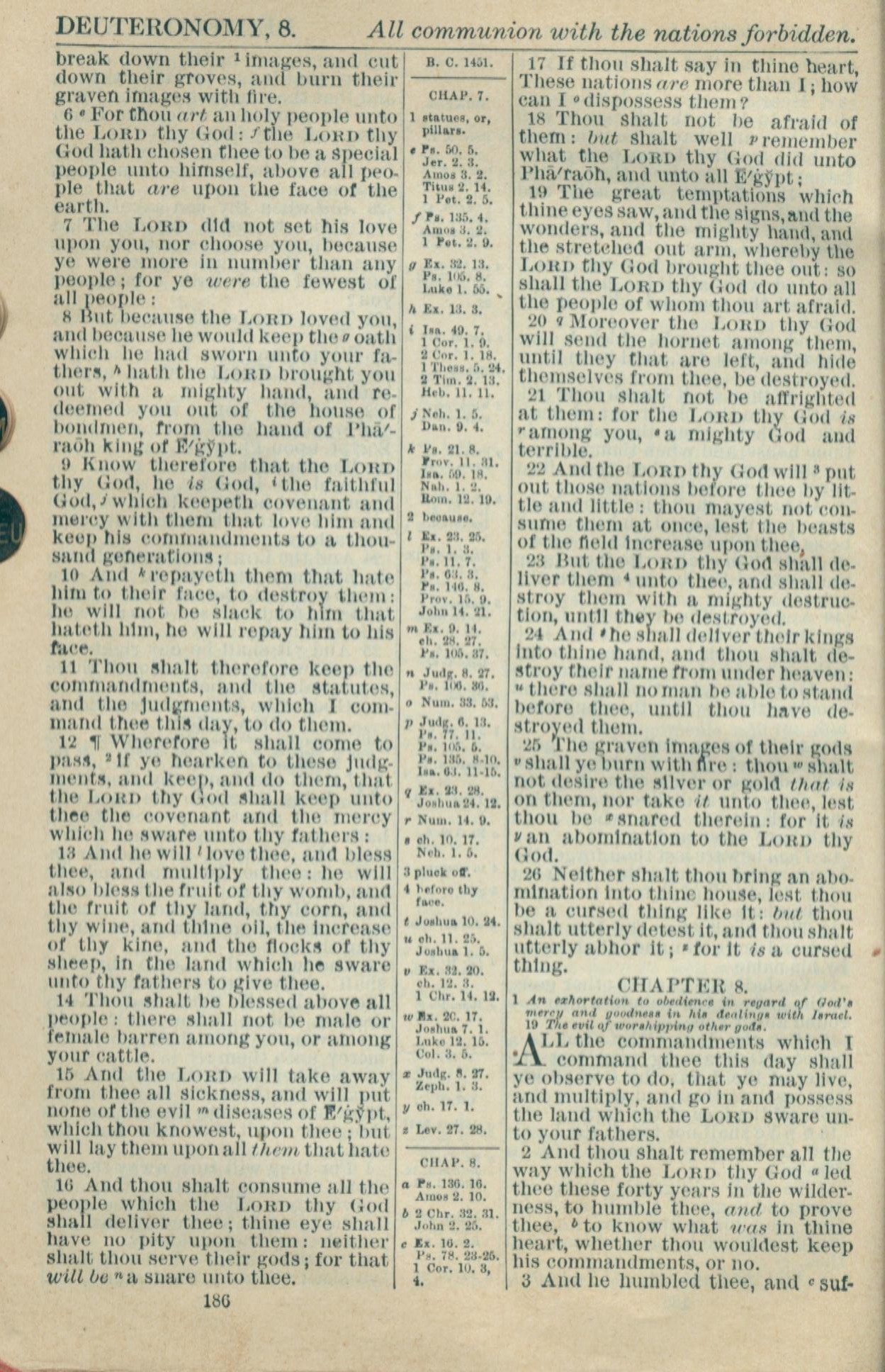 1916年Holy Bible 申命記 7 章 6 節到 8 章 3 節