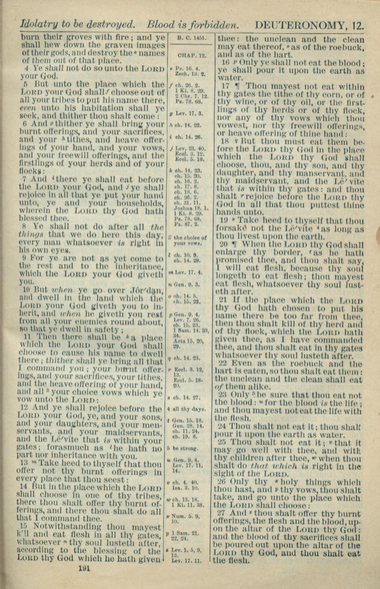 1916年Holy Bible 申命記 12 章 4 節到 12 章 27 節