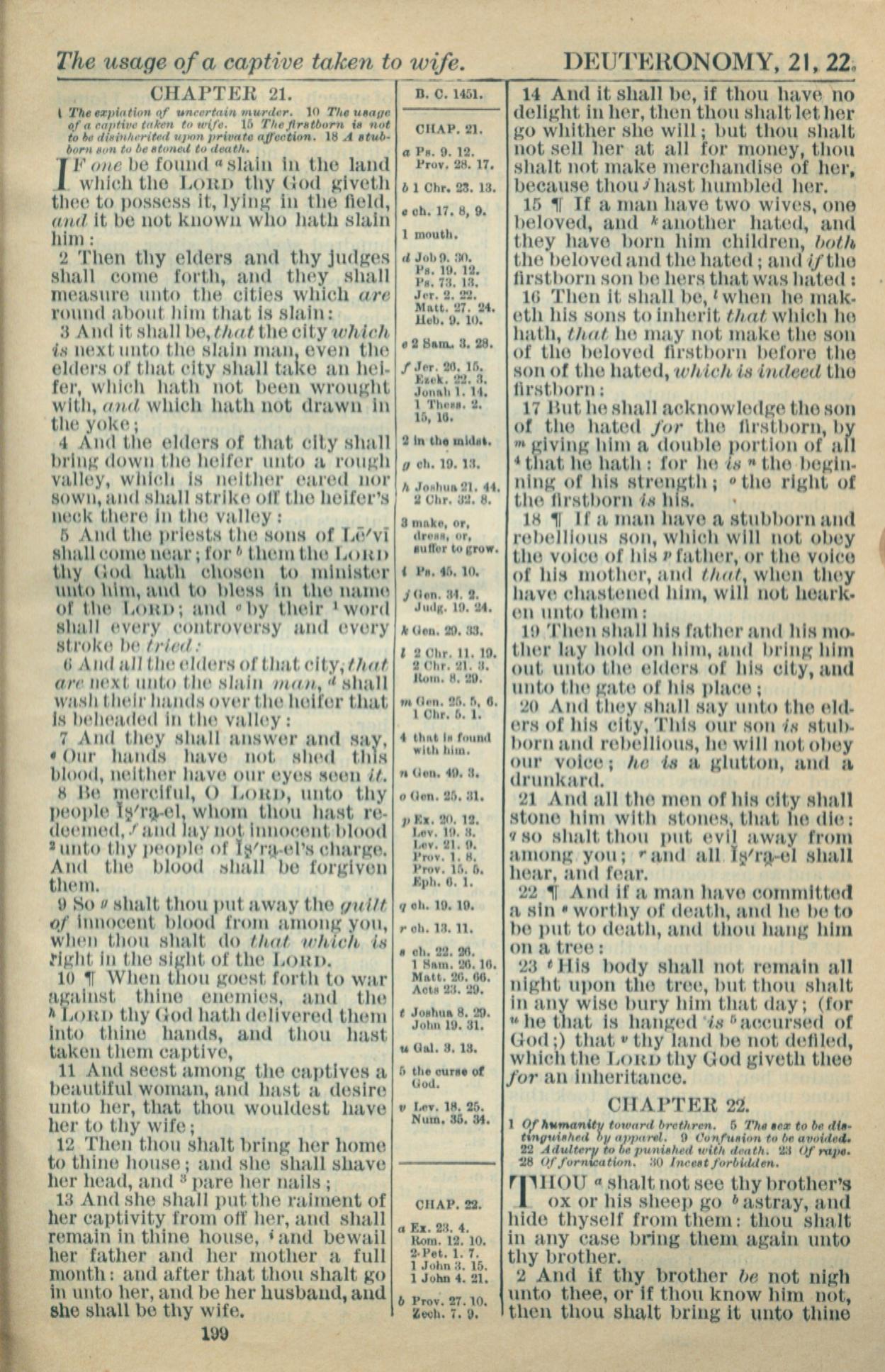 1916年Holy Bible 申命記 21 章 1 節到 22 章 2 節