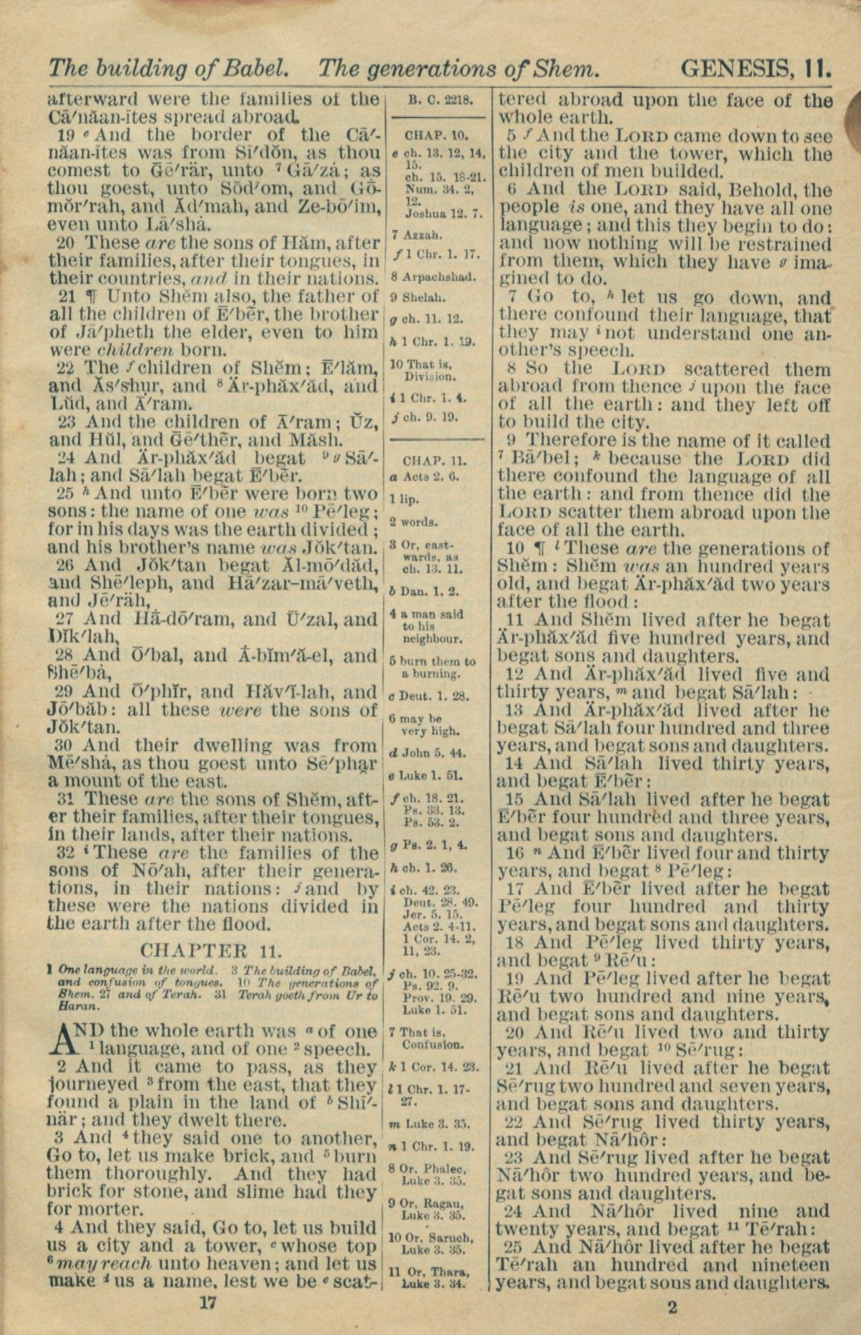 1916年Holy Bible 創世記 10 章 19 節到 11 章 25 節