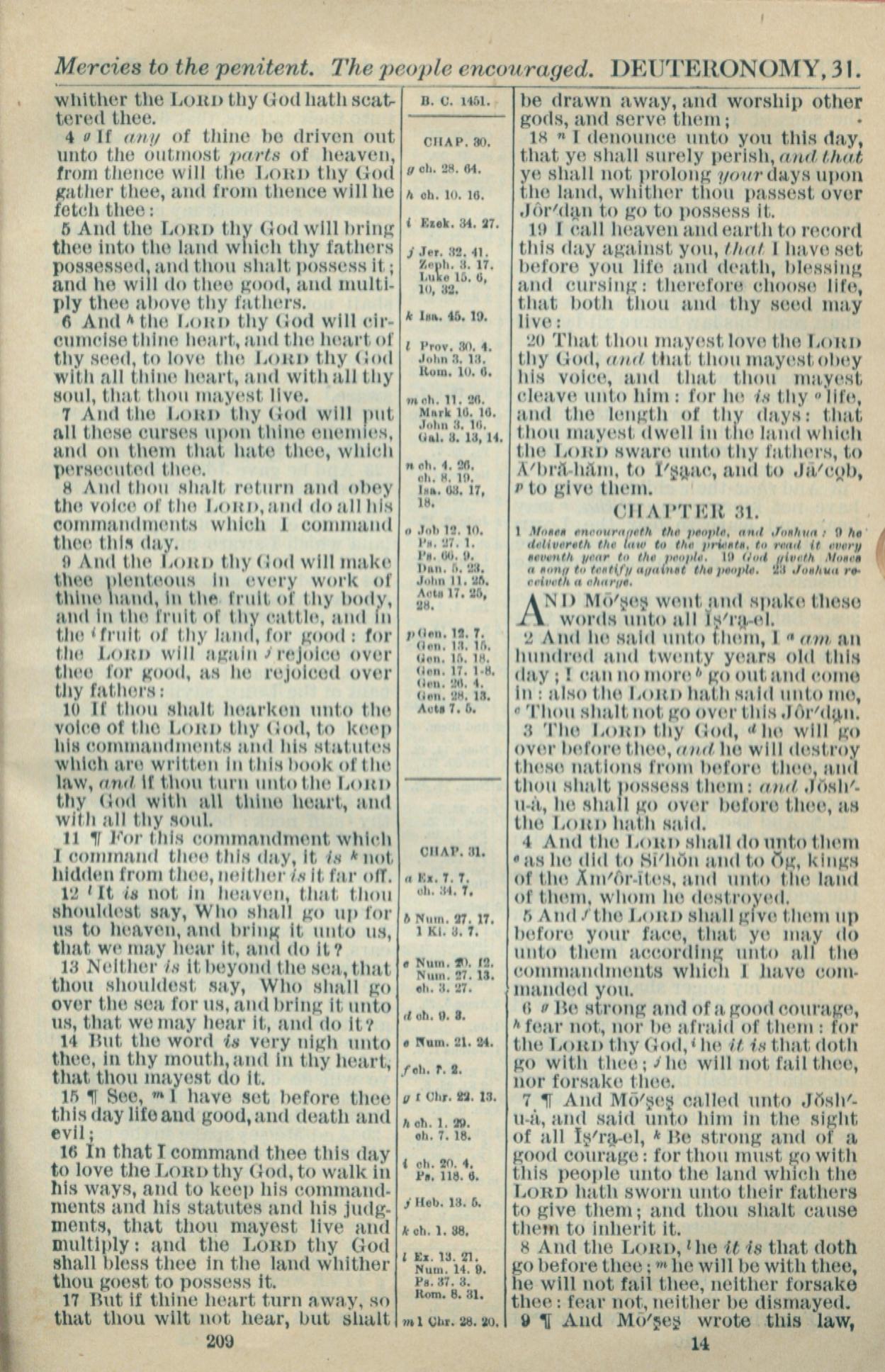 1916年Holy Bible 申命記 30 章 4 節到 31 章 9 節