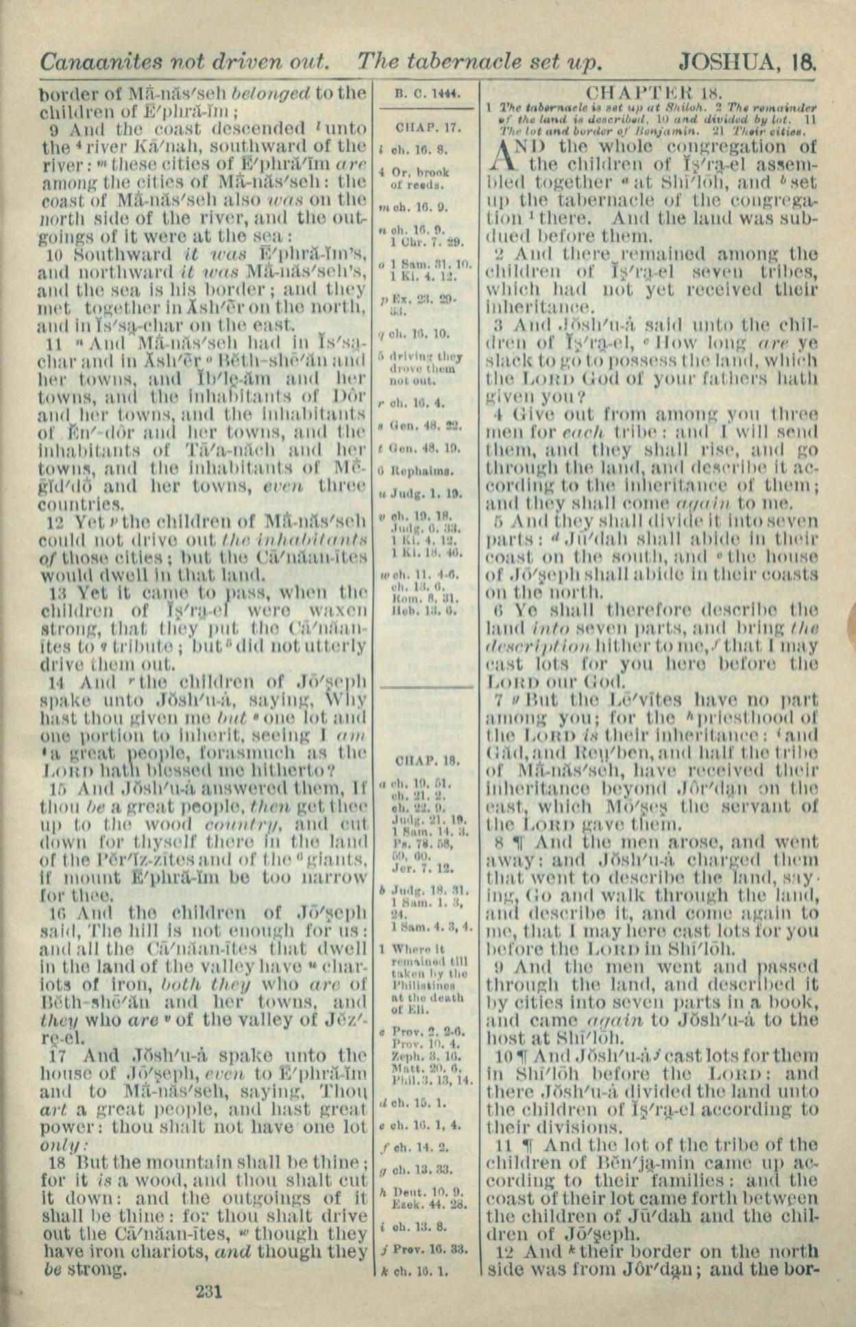 1916年Holy Bible 約書亞記 17 章 9 節到 18 章 12 節