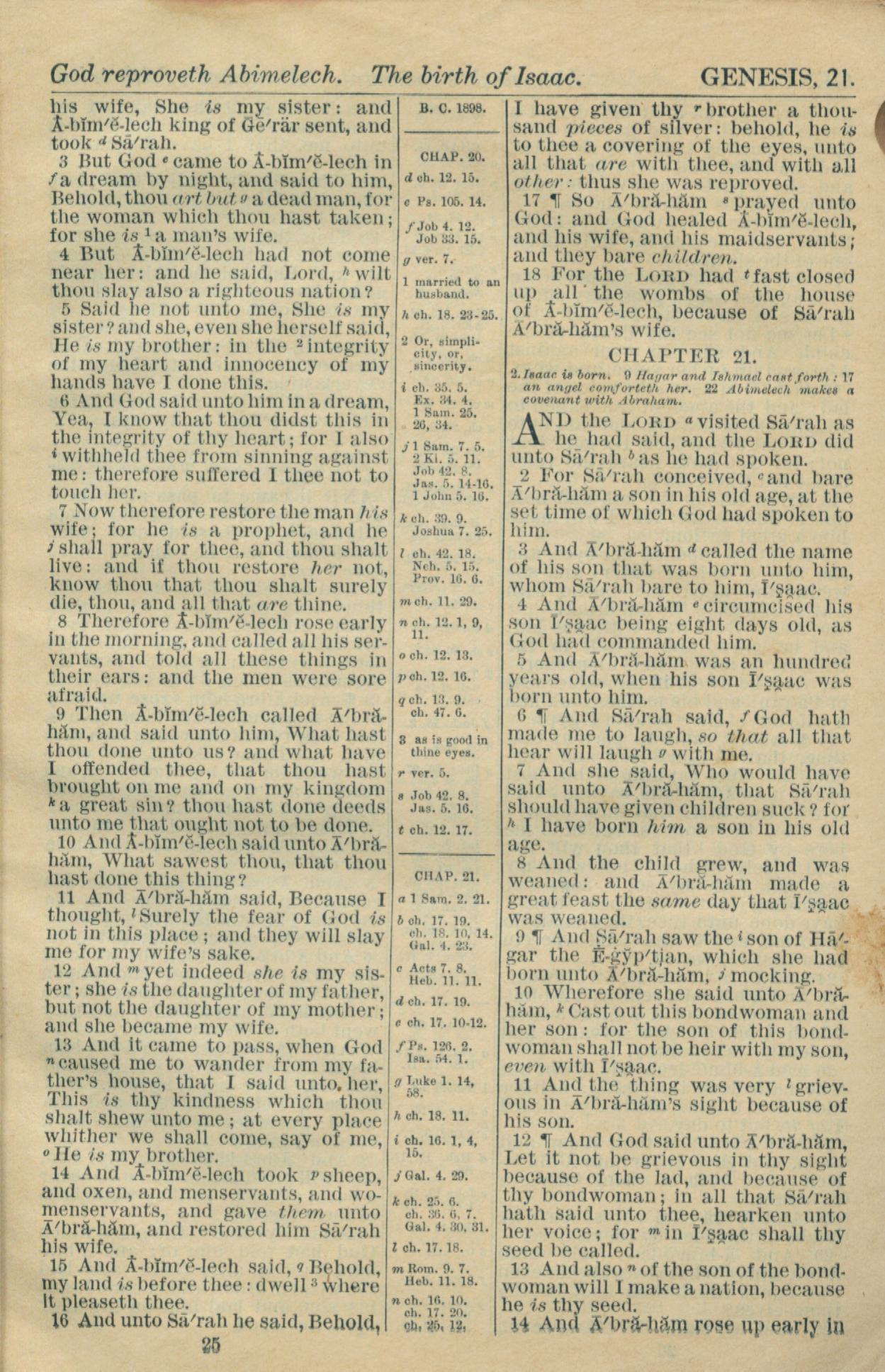 1916年Holy Bible 創世記 20 章 3 節到 21 章 14 節