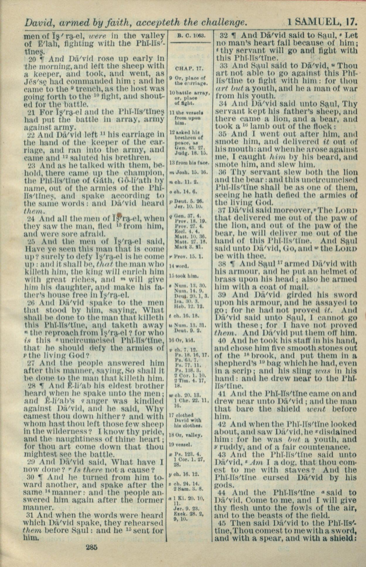 1916年Holy Bible 撒母耳記上 17 章 20 節到 17 章 45 節