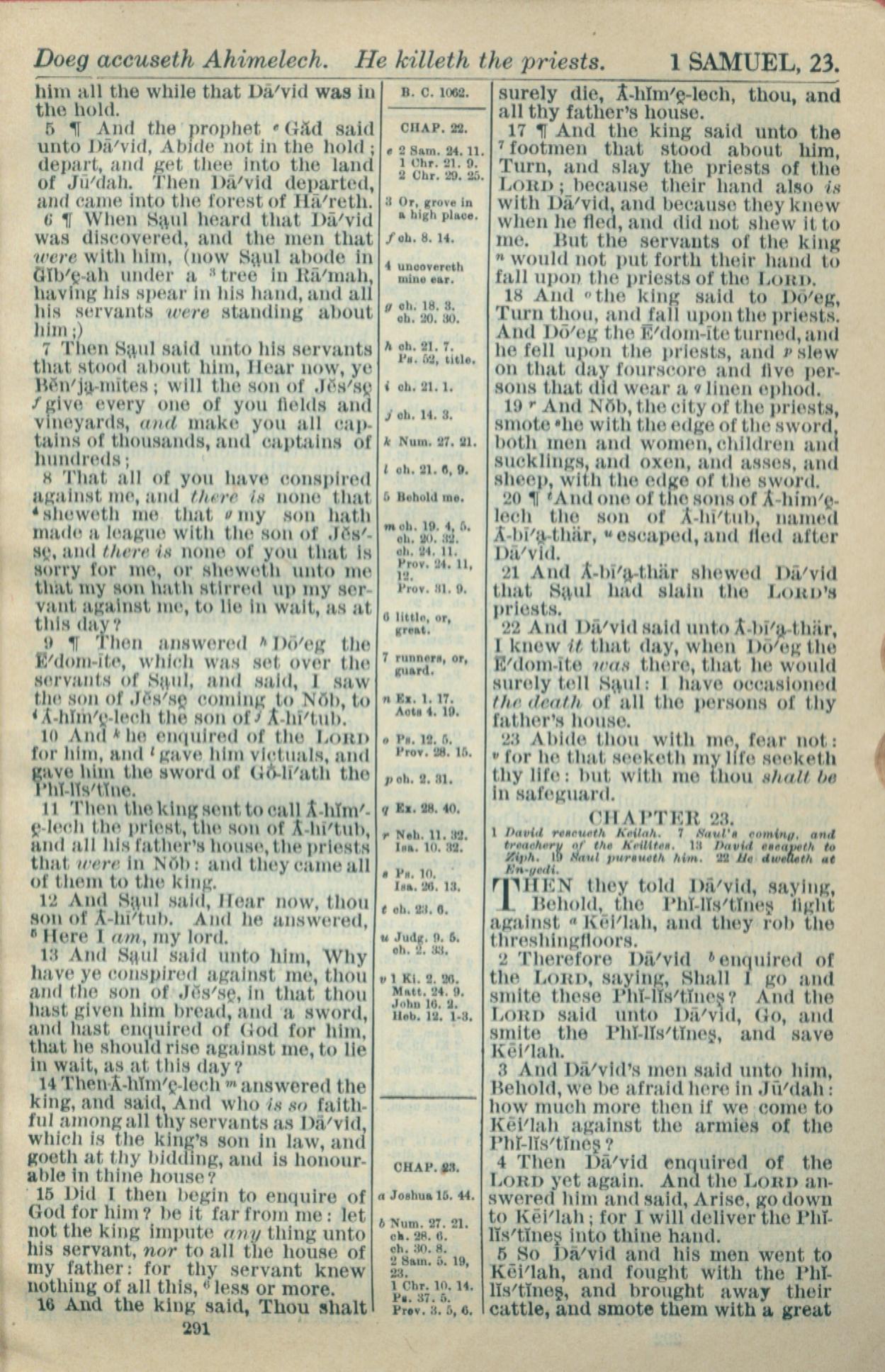 1916年Holy Bible 撒母耳記上 22 章 5 節到 23 章 5 節