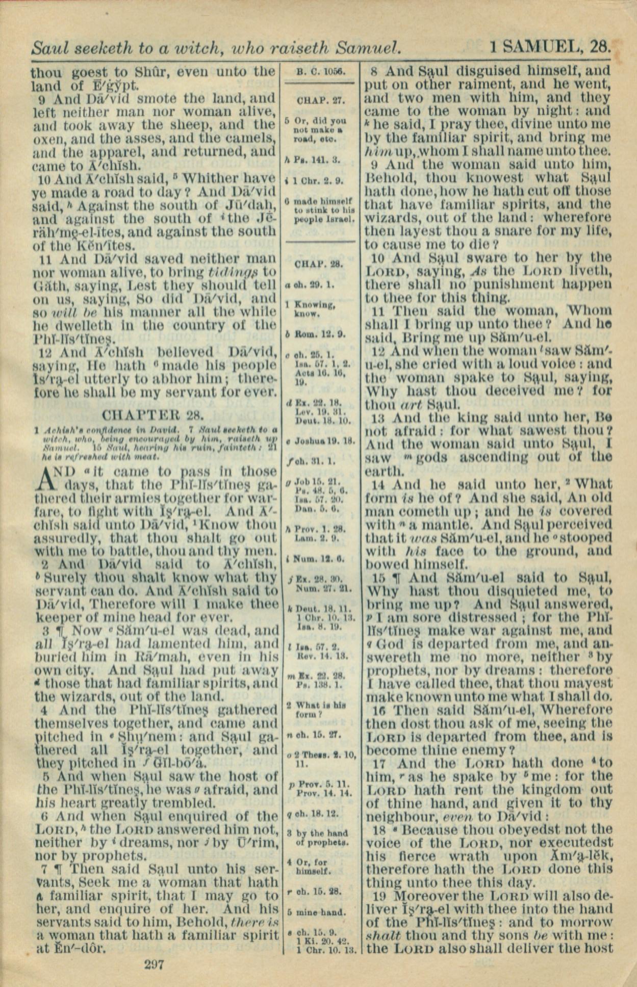 1916年Holy Bible 撒母耳記上 27 章 9 節到 28 章 19 節