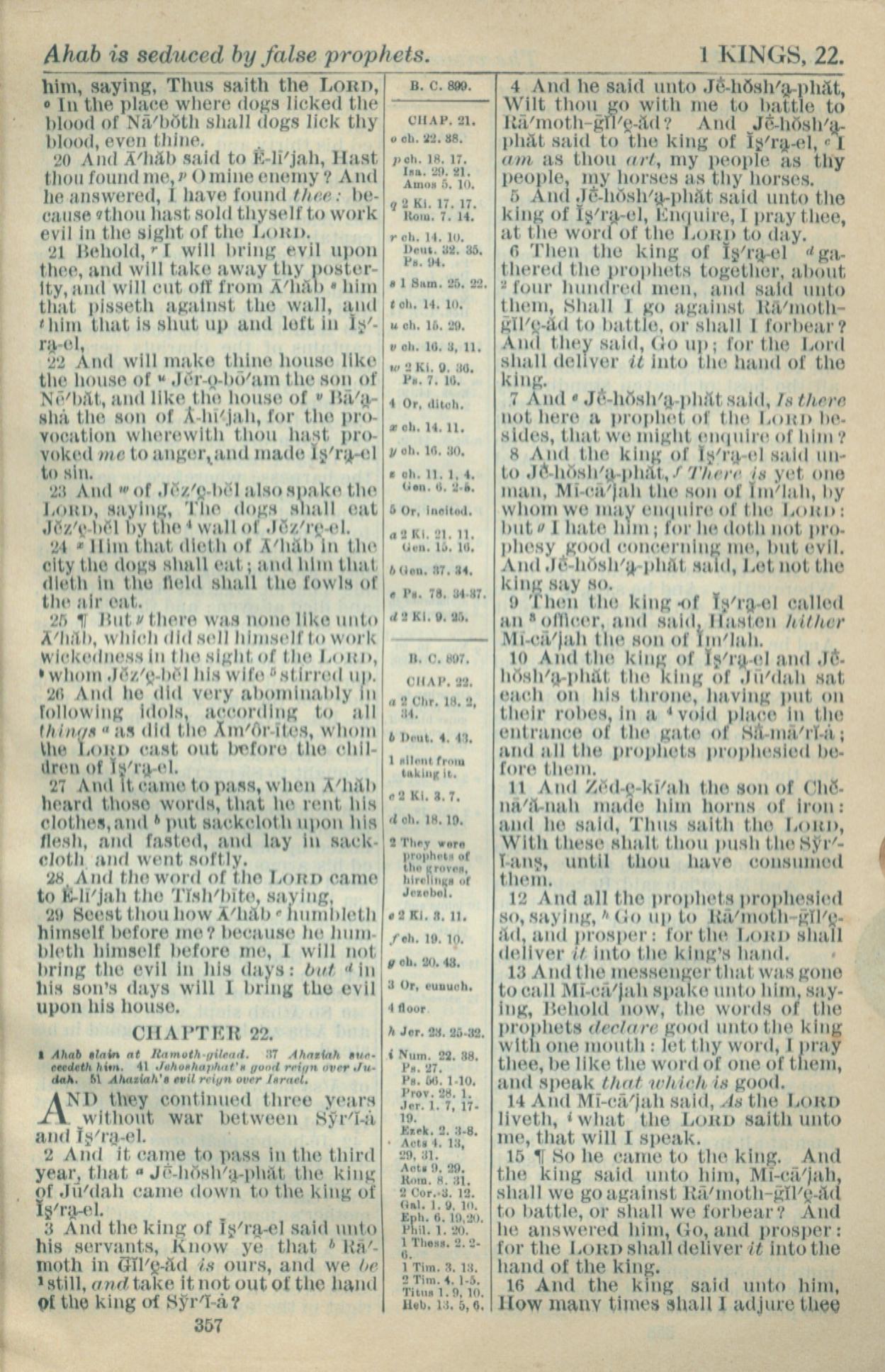 1916年Holy Bible 列王紀上 21 章 20 節到 22 章 16 節