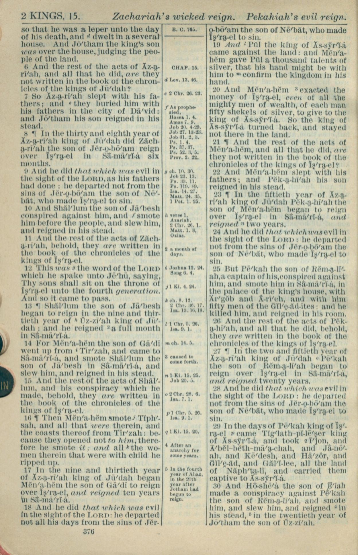 1916年Holy Bible 列王紀下 15 章 6 節到 15 章 30 節
